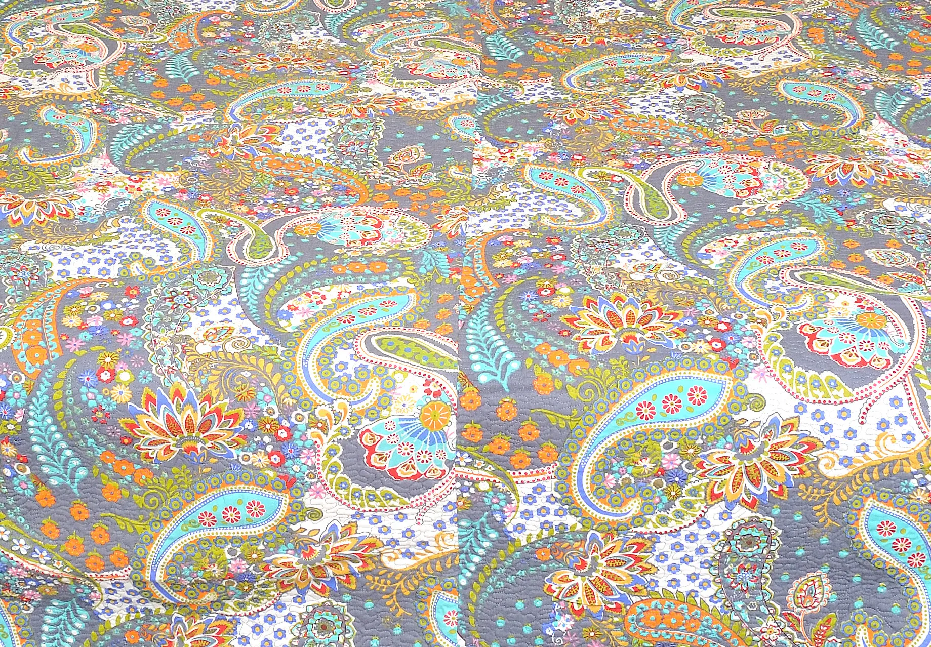 Transform your bedroom into a tranquil oasis with this beautifully crafted comforter. The intricate paisley design, a timeless motif of elegance and grace, cascades across the fabric in a mesmerizing dance of color and form. The vibrant hues are carefully selected to evoke a sense of calm and serenity, creating a peaceful atmosphere perfect for restful sleep. The detailed patterns are richly embellished with a cornucopia of shades. You'll find touches of orange and turquoise interspersed, contrasted against an neutral background, creating an eye-catching piece. The overall effect is a captivating blend of traditional artistry and contemporary aesthetics, designed to enhance any bedroom décor.