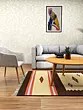 The color palette is both warm and inviting, featuring a delightful blend of chocolate chip browns and soft vanilla hues, accented by subtle pops of color. The geometric patterns, carefully arranged across the rug, create a visually appealing texture that complements a variety of decor styles. The central design element, a unique patterned square, draws the eye, while the alternating bands of solid color and striped detailing offer a sense of balance and harmony. Fringe accents along the edges add a touch of playful elegance.