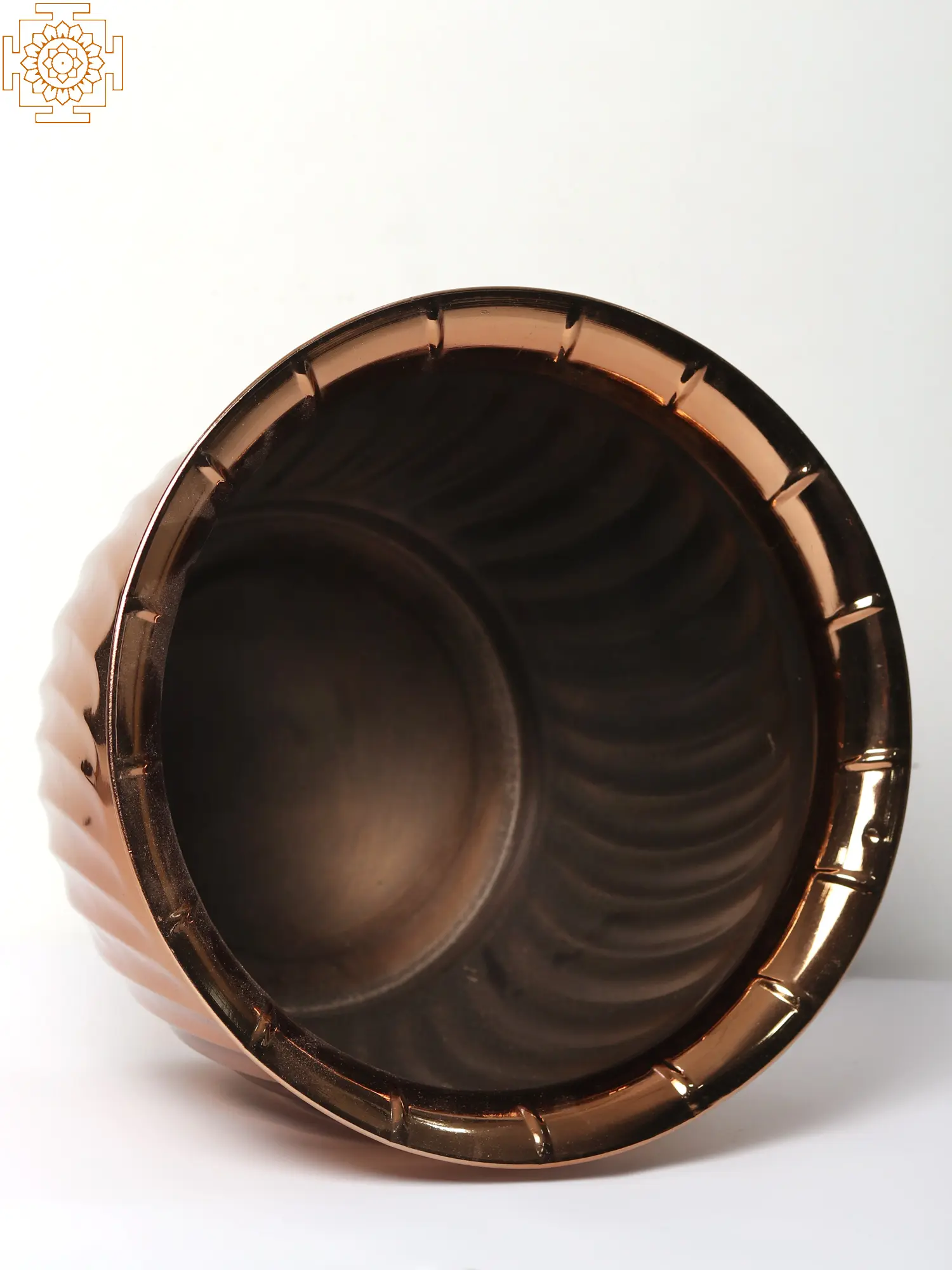 This Copper Planter coupled with the wavy patterns adorning the planter's body, coupled with the rose gold finish, creates a visual spectacle. The play of light on the curvatures forms an enchanting optical illusion, enhancing its allure. Each undulating wave adds a touch of sophistication, turning the planter into a functional work of art.