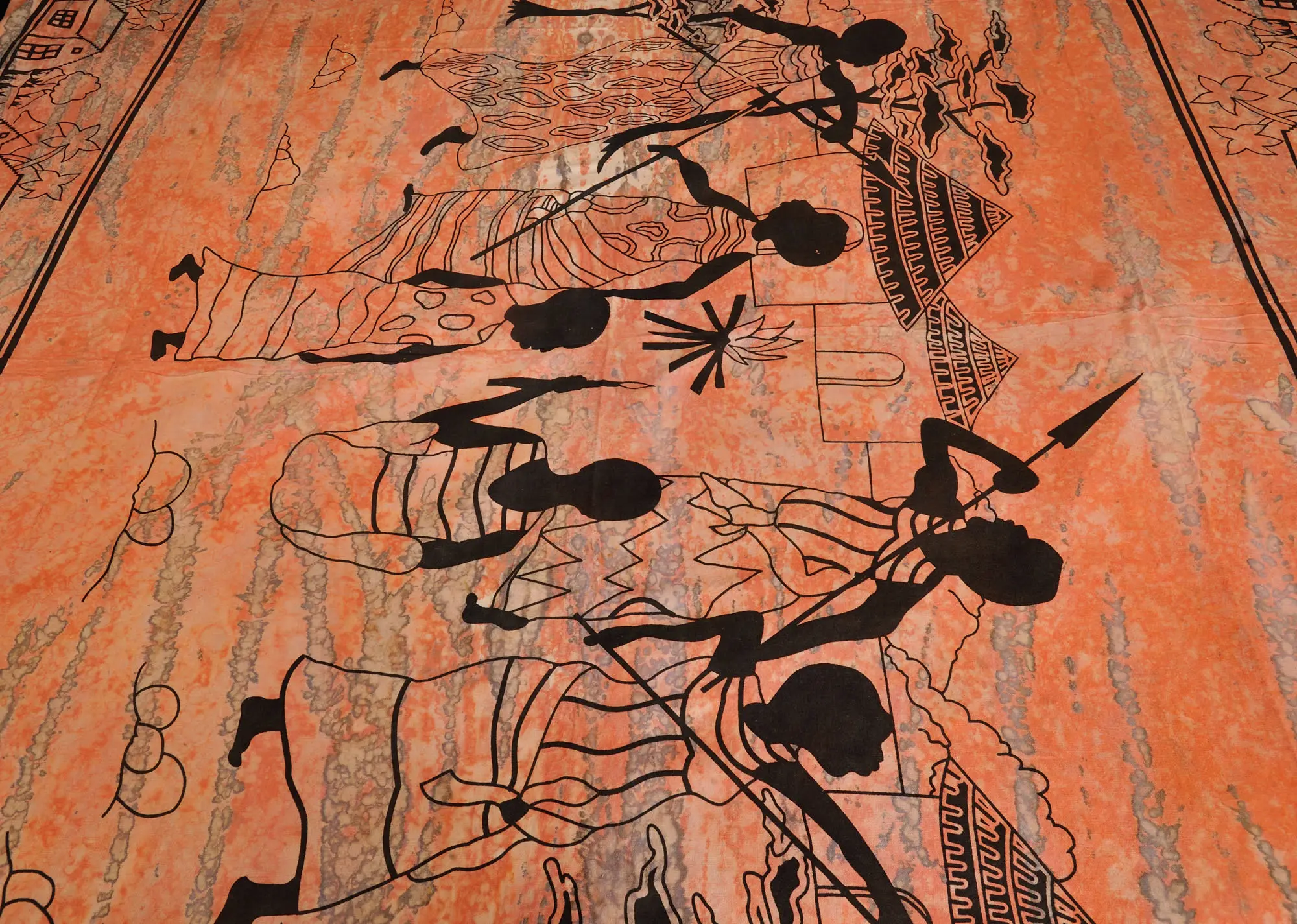 Coral-Sands Batik-Dyed Bedsheet with African Tribal Folk Print