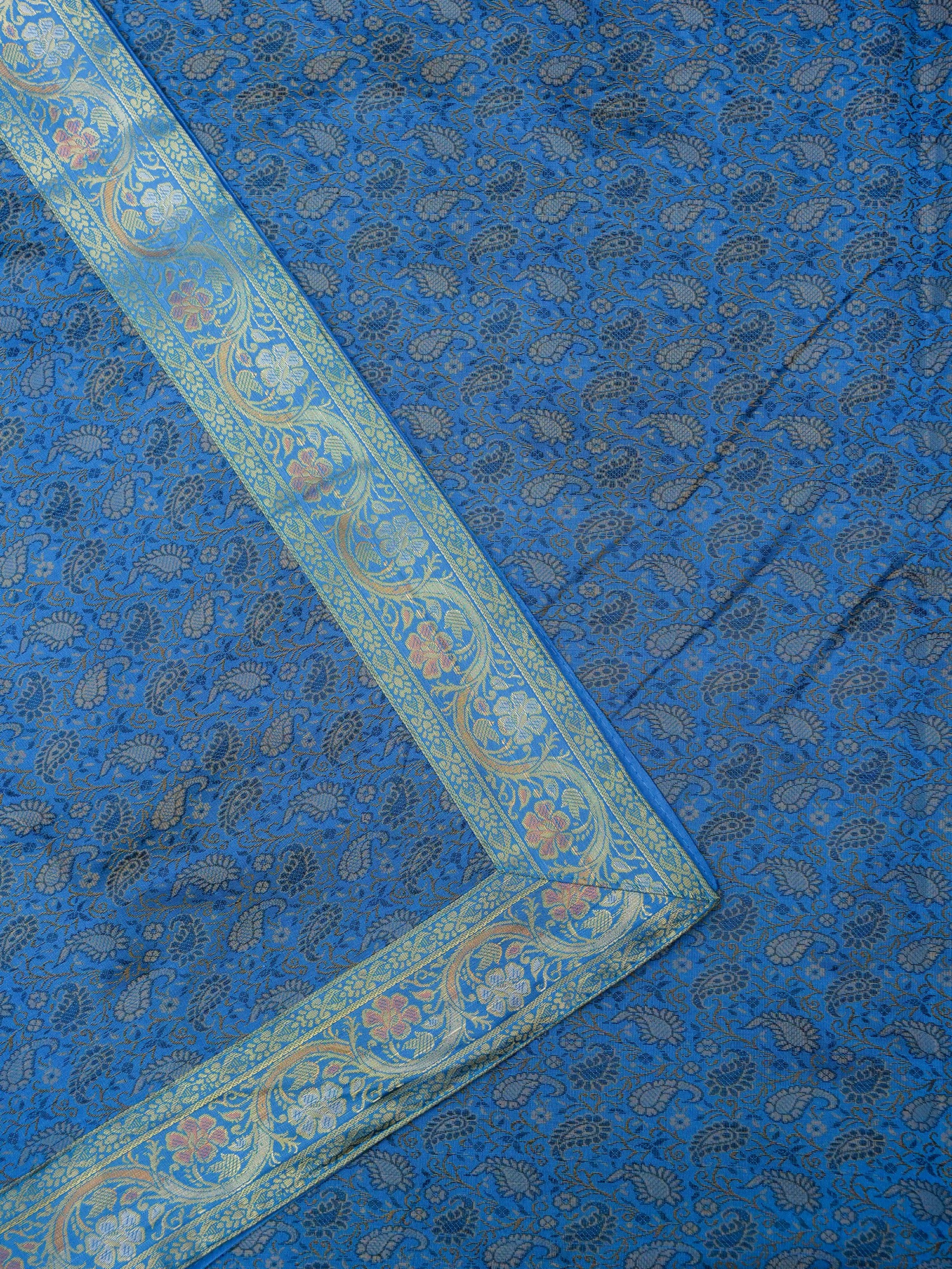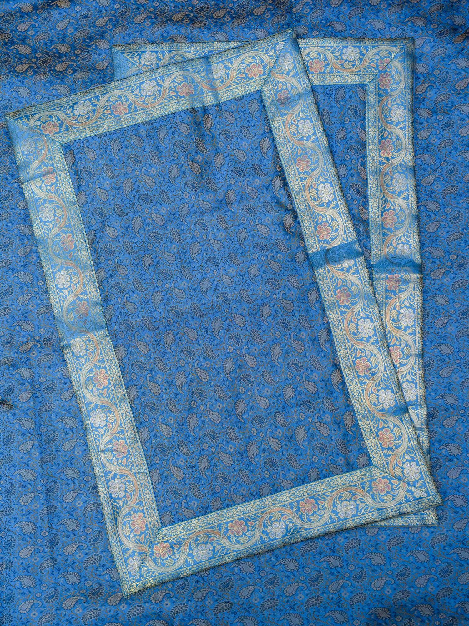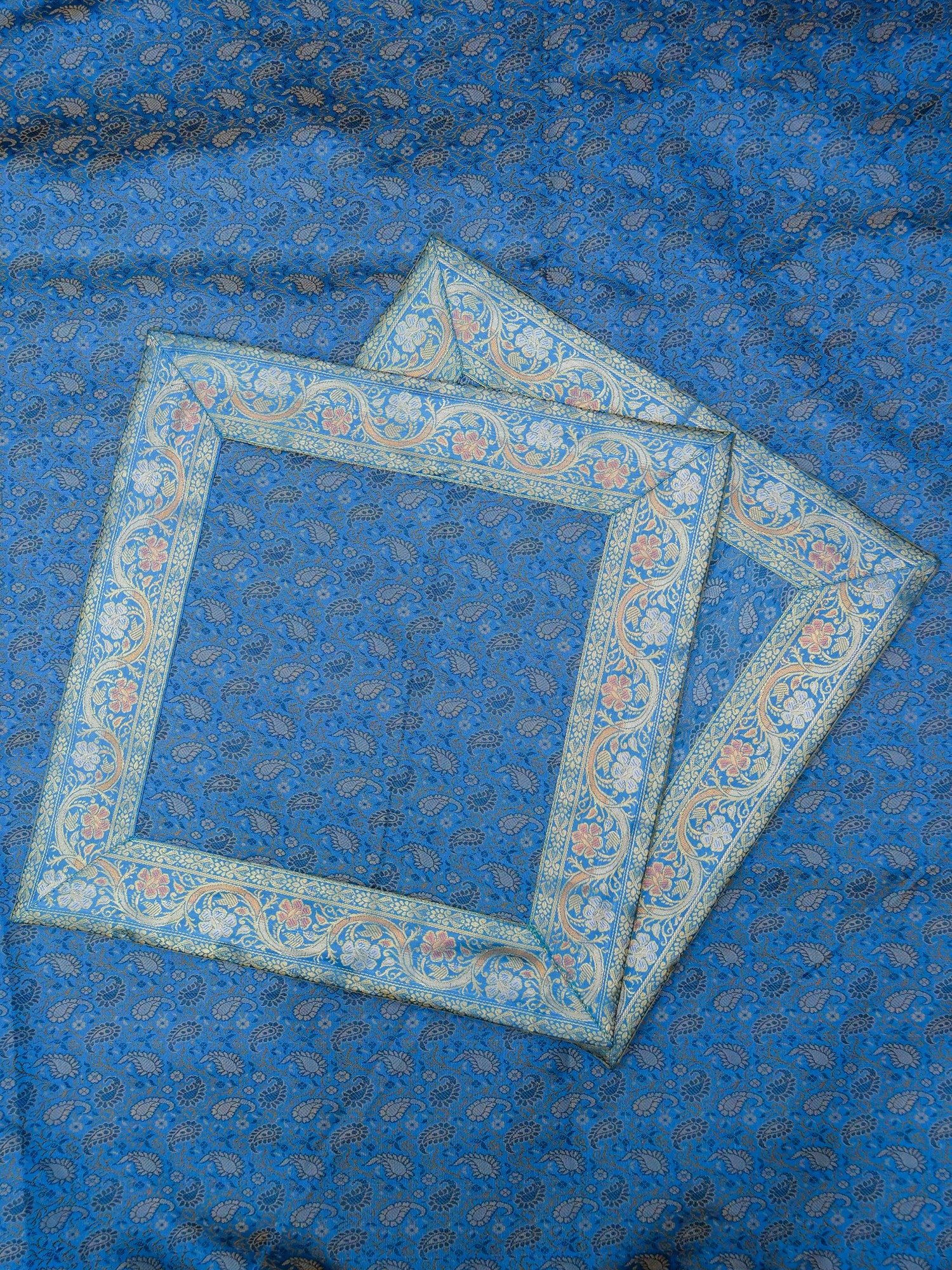 Upgrade the bedroom decor with this stunning Cotton Tanchoi Banarasi Bedspread, an authentic work of Indian skill. It is made of Banarasi Tanchoi cotton and has an elegant Paisley-Floral Vine pattern. A beautiful and harmonious combination of tradition and elegance is manifested through a vibrant Paisley print of cream and black color. The border resembles Meenakari art, making it look quite royal. A complete and sophisticated transformation of normal space into an extravagant space that blends art and comfort in one elegant package is comprised of this plush ensemble, including cushions and matching pillow covers.