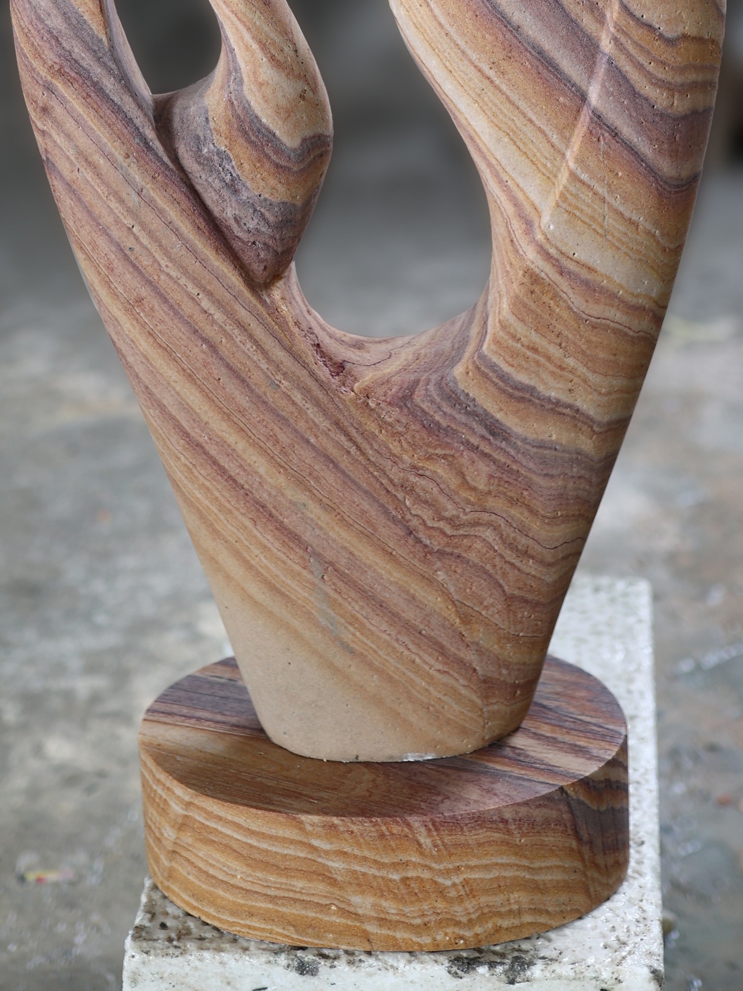 This sandstone sculpture is shaped as though the artist has coaxed a moment of grace from the earth itself.
