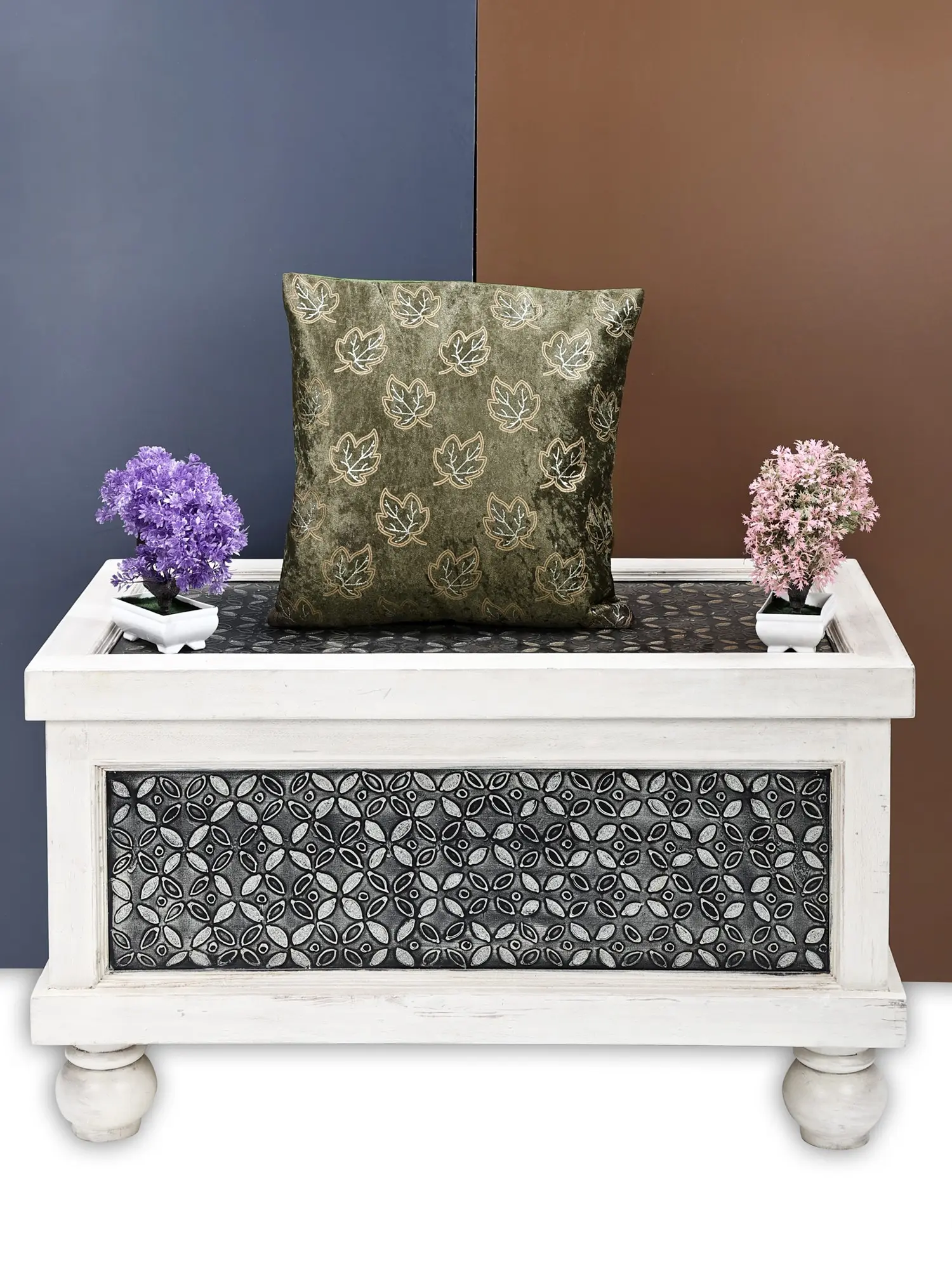 Indulge in the understated beauty of our Cushion Cover Velvet Small Leafs, graced with a captivating Gold Sparkle Print. The crafted design, featuring delicate small leaf motifs, exudes a sense of refinement and cultural richness. The soft velvet fabric adds a touch of luxury, creating an inviting and stylish focal point for your living space. Let this cushion cover be a statement piece that effortlessly merges traditional charm with contemporary allure.