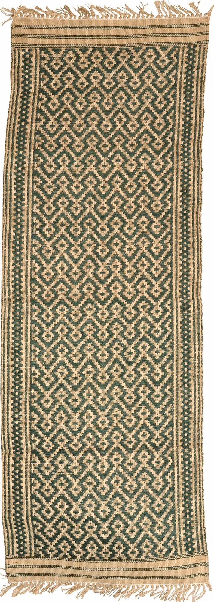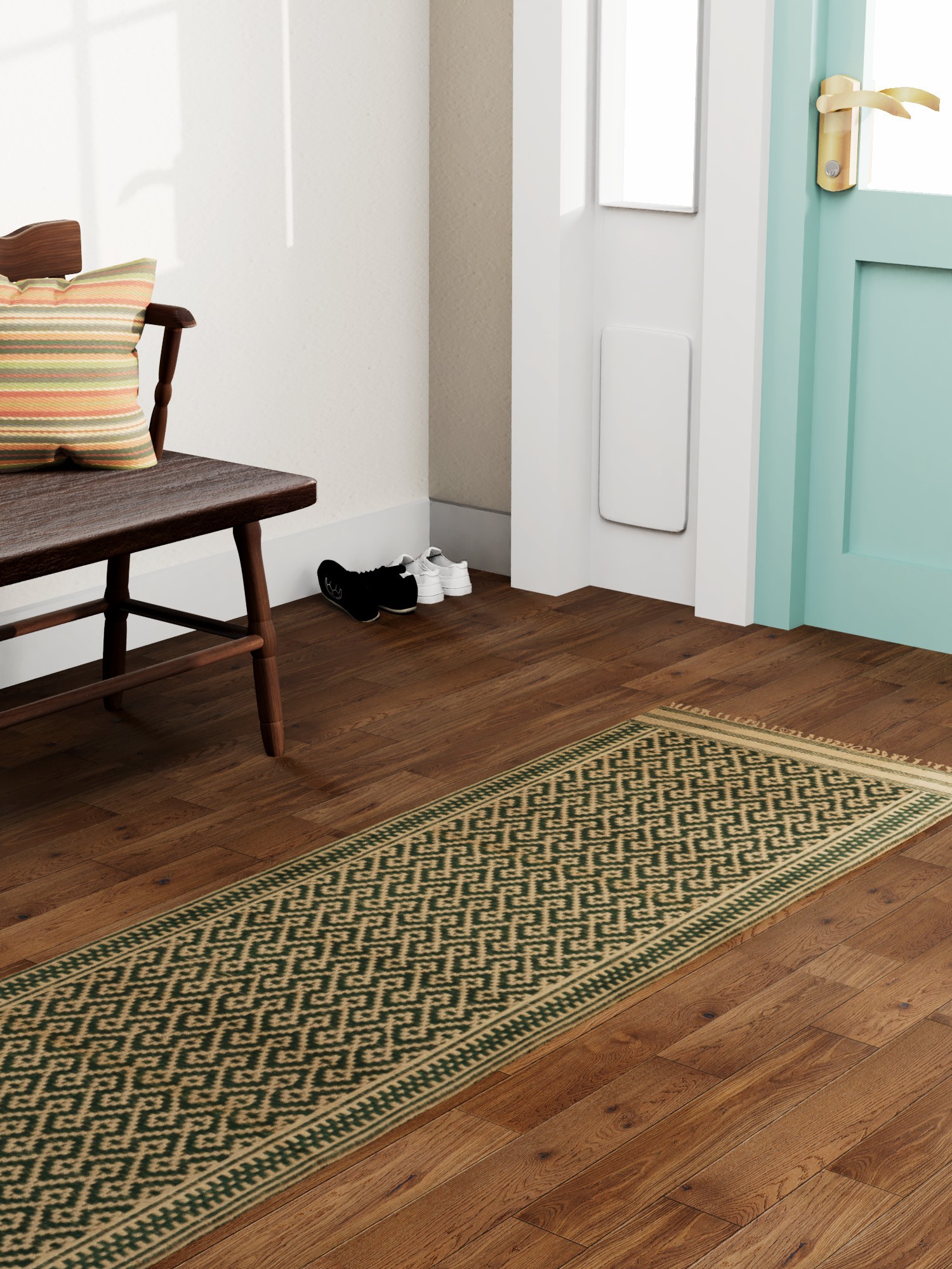 Green and Beige Dhurrie from Telangana with All-Over Weave