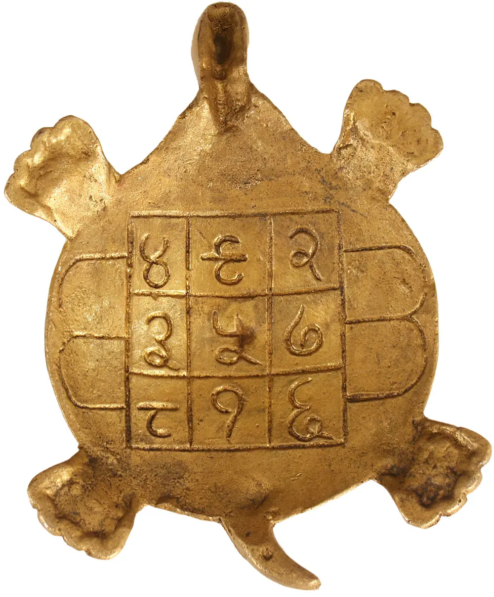 A golden, geometrically designed five-cornered lamp, which can light five wicks, is positioned on the sturdy spherical back of a golden tortoise. With its two front legs and one hind back leg, a short dagger-shaped tail, a long, slim neck bent to one side, nostrils and one large eye, the elegant Brass tortoise is looking very cute. An attractive carving of flowers-leaves on its protective shell and the nails of the feet are enhancing the beauty. The dashing golden Vastu tortoise Brass lamp is genuinely auspicious for your establishment.