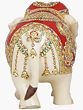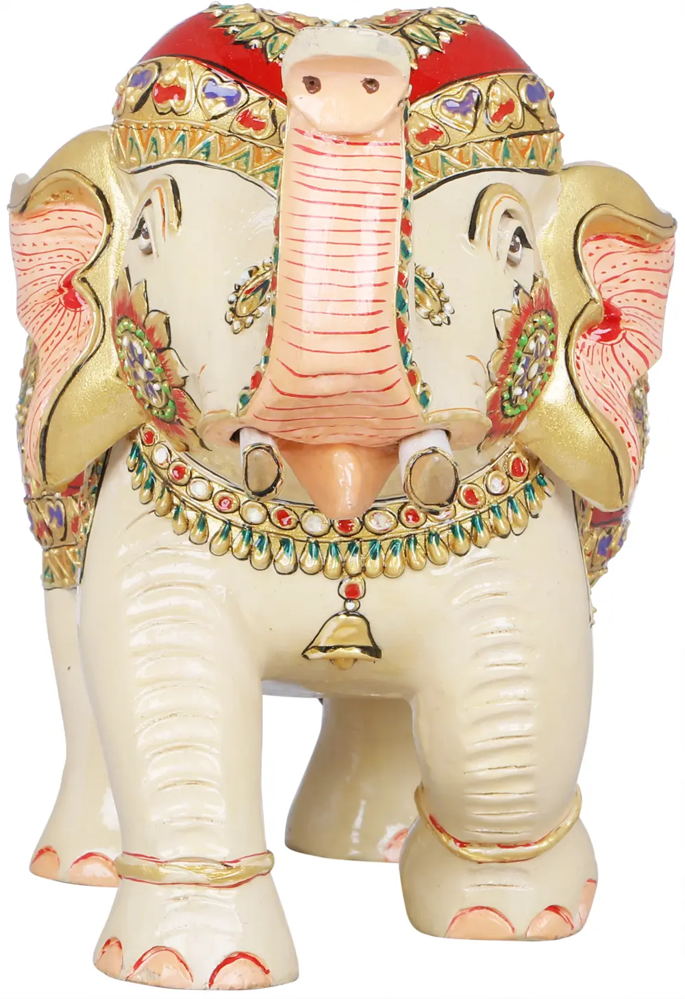 Flower patches on the face compliment the red patterned cloth and the tusks sharply extend forward. Front two legs display pragmatic horizontal striations and a pattern similar to hanging bells at the back and on the tail enhances its good fortune. The fully carved sculpture is sculpted by the best and experienced artists of Jaipur, their hardwork and patience can be easily figured by the perfect curvatures and carvings of this fortunate elephant statue.