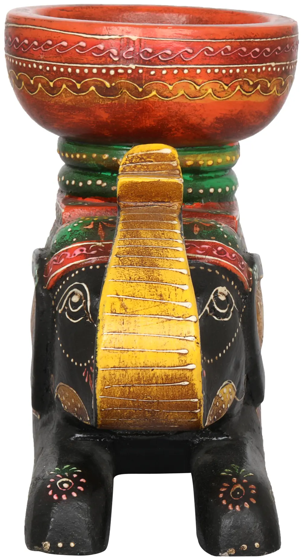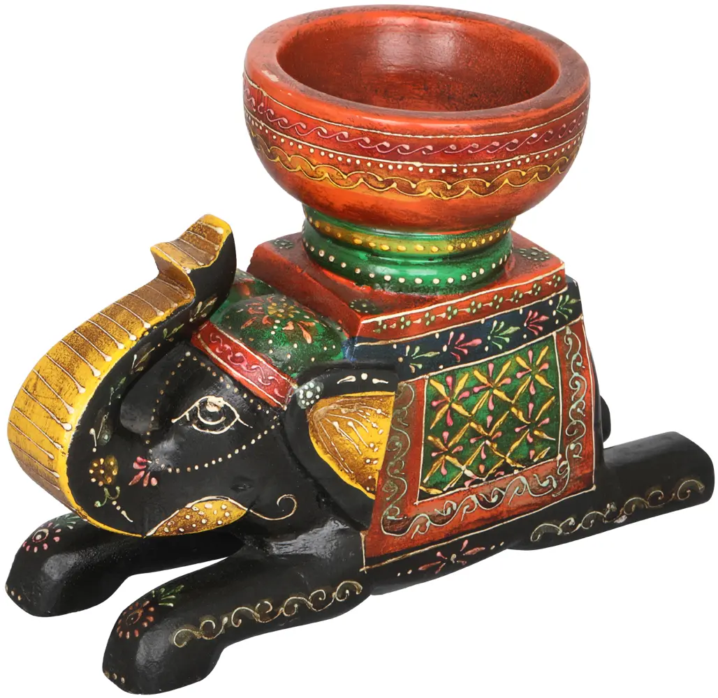 Decorated Wooden Elephant with a Bowl on His Back
