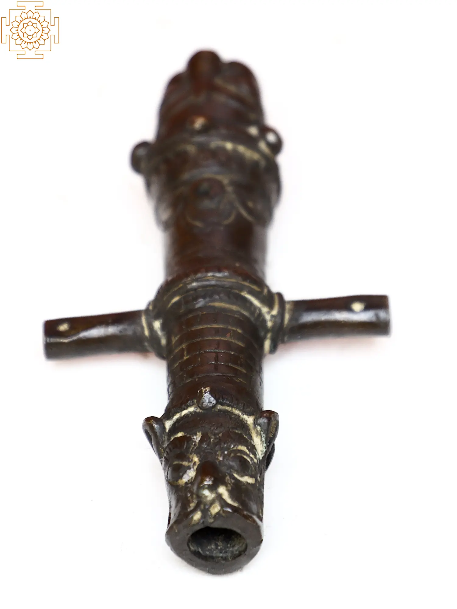 Features a unique dual-ended design with fierce animal head sculptures at each extremity.