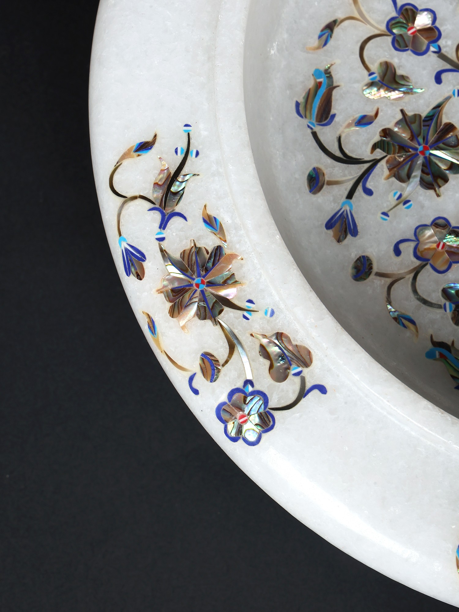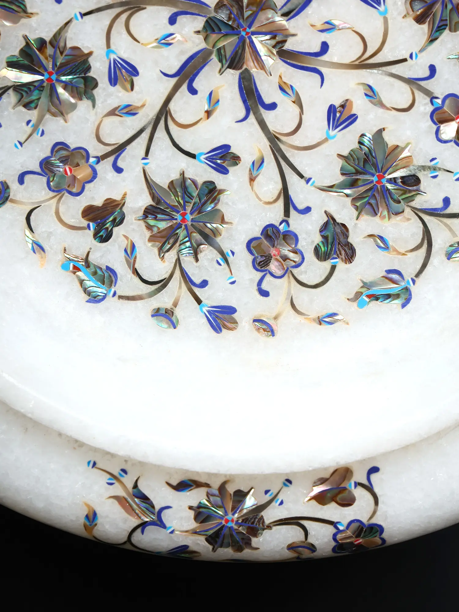 To maintain its pristine condition and ensure a lifetime of enjoyment, gently wipe clean with a soft, damp cloth. Avoid harsh chemicals or abrasive cleaners, which can dull the marble and compromise the delicate inlay work. With proper care, this heirloom-quality piece will retain its exquisite beauty and become a cherished treasure for generations to come, a testament to enduring artistry.