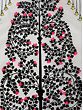 The central motif is a stylized tree, rendered in bold black lines against a soft, neutral background. Its branches spread outwards, adorned with delicate pink blossoms, creating a striking contrast that draws the eye. The meticulous detailing of each leaf and petal speaks to the painstaking process involved in its creation, a true labor of love. The trunk of the tree is strong and defined, anchoring the entire composition and symbolizing stability and endurance.
