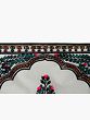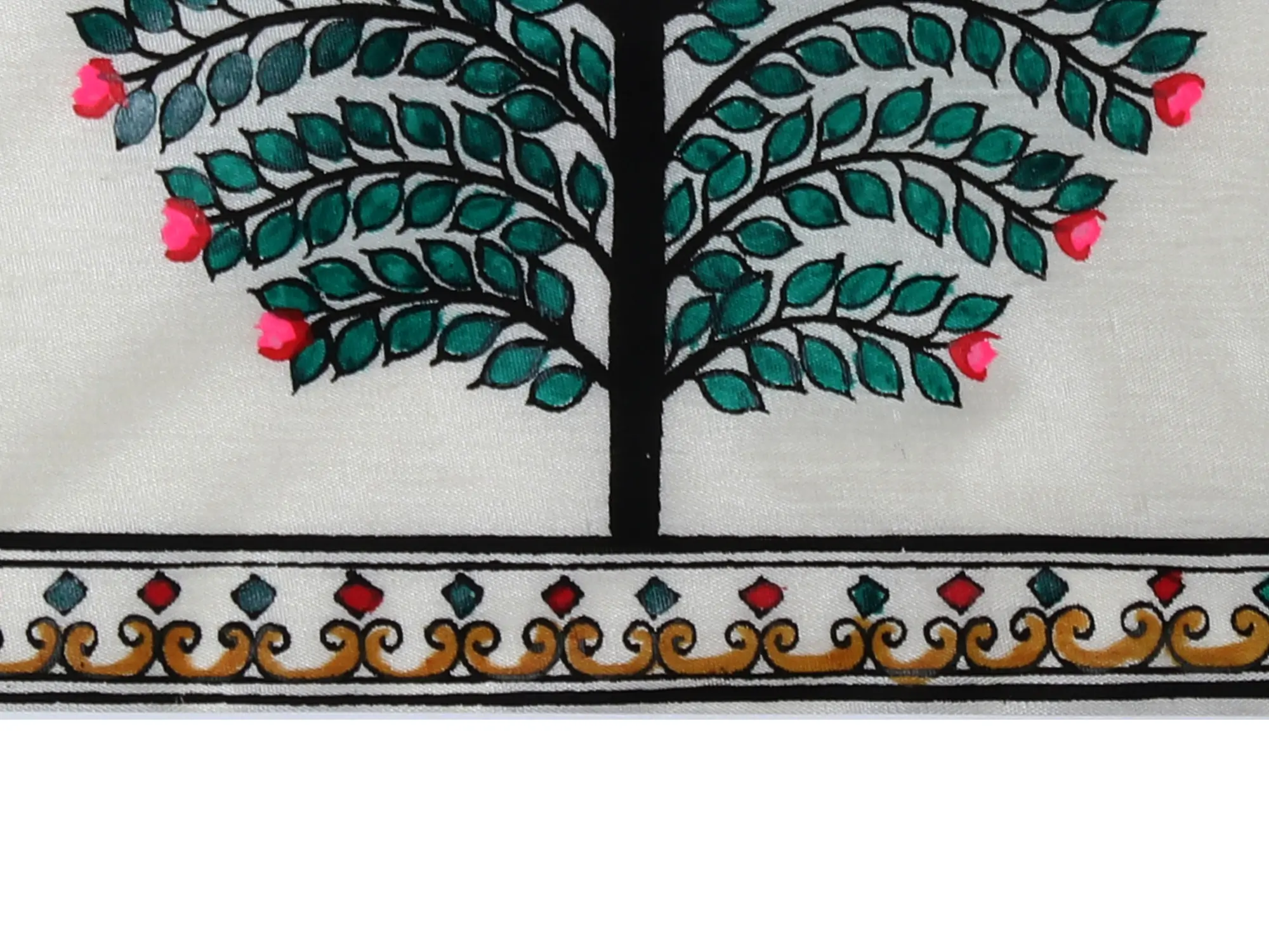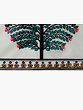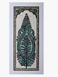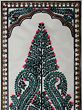 Encasing the central motif is a beautifully crafted border. The top of the painting features an arched doorway-like element, reminiscent of traditional Indian architecture, further enhancing the cultural context of the artwork. This arch is adorned with fine detailing, a mix of earthy browns and subtle golds, creating a sense of regal grandeur. Flanking the central image, a decorative border runs vertically, composed of repeating geometric patterns and scrolling motifs in black, yellow, and hints of red. This intricate framing not only draws attention to the central tree but also adds depth and a finished look to the entire piece. The careful layering of these border elements demonstrates the artist's mastery in creating visually captivating compositions.
