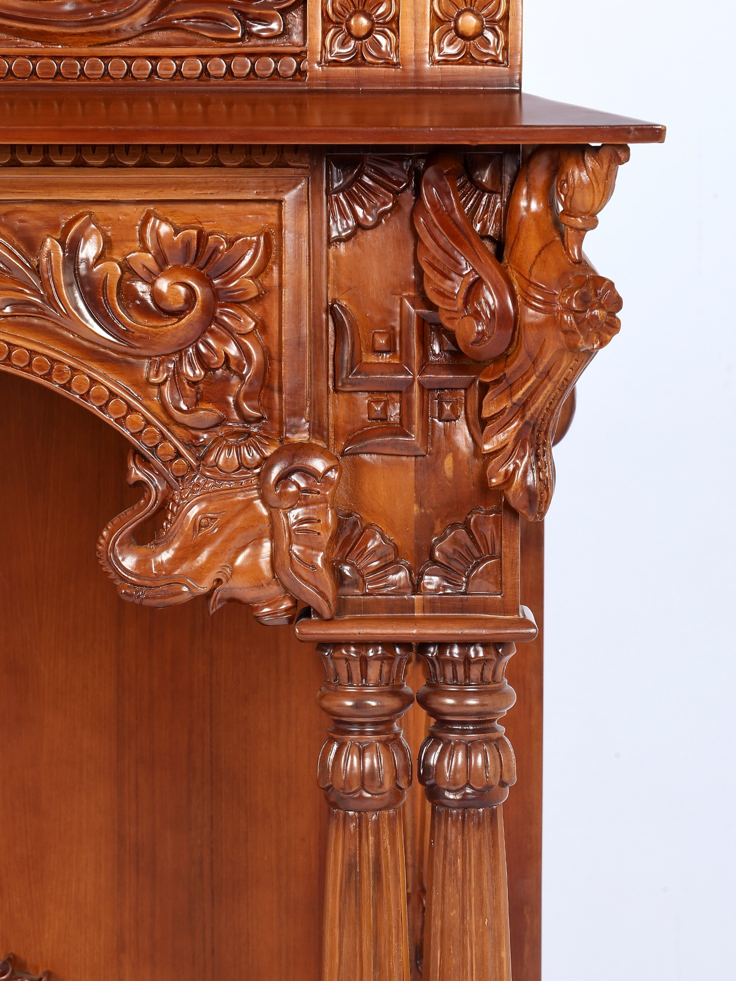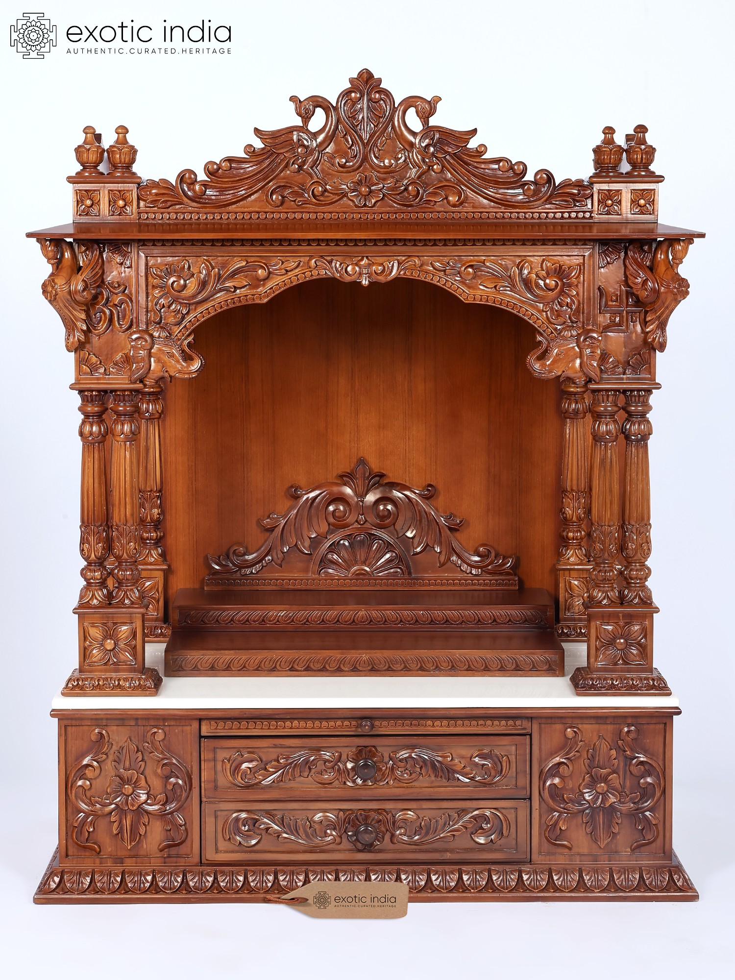 Imagine gracing your living room, study, or dedicated prayer room with this magnificent piece. It is perfectly suited for housing your idols and puja essentials, creating an organized and aesthetically pleasing altar. The dual storage compartments discreetly integrated into its base offer practical solutions for keeping your sacred items tidy and accessible, enhancing your devotional practices.