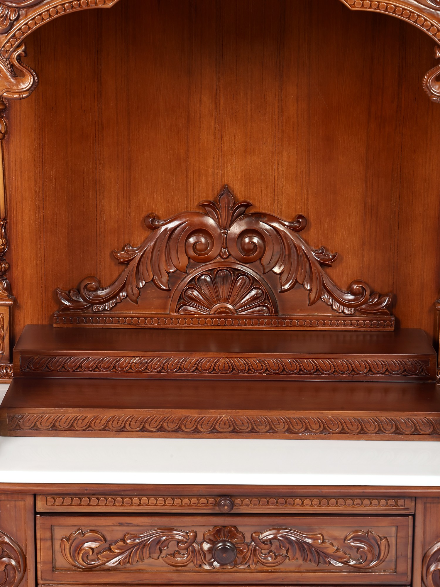 Grand Wooden Puja Temple with Marble Top & Dashavatara Carvings
