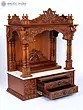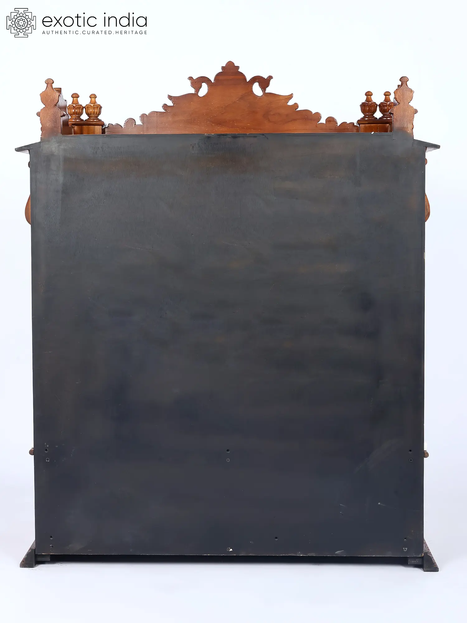 20" Temple-Altar with Prabhavali and a Drawer In Brass & Wood | Handmade