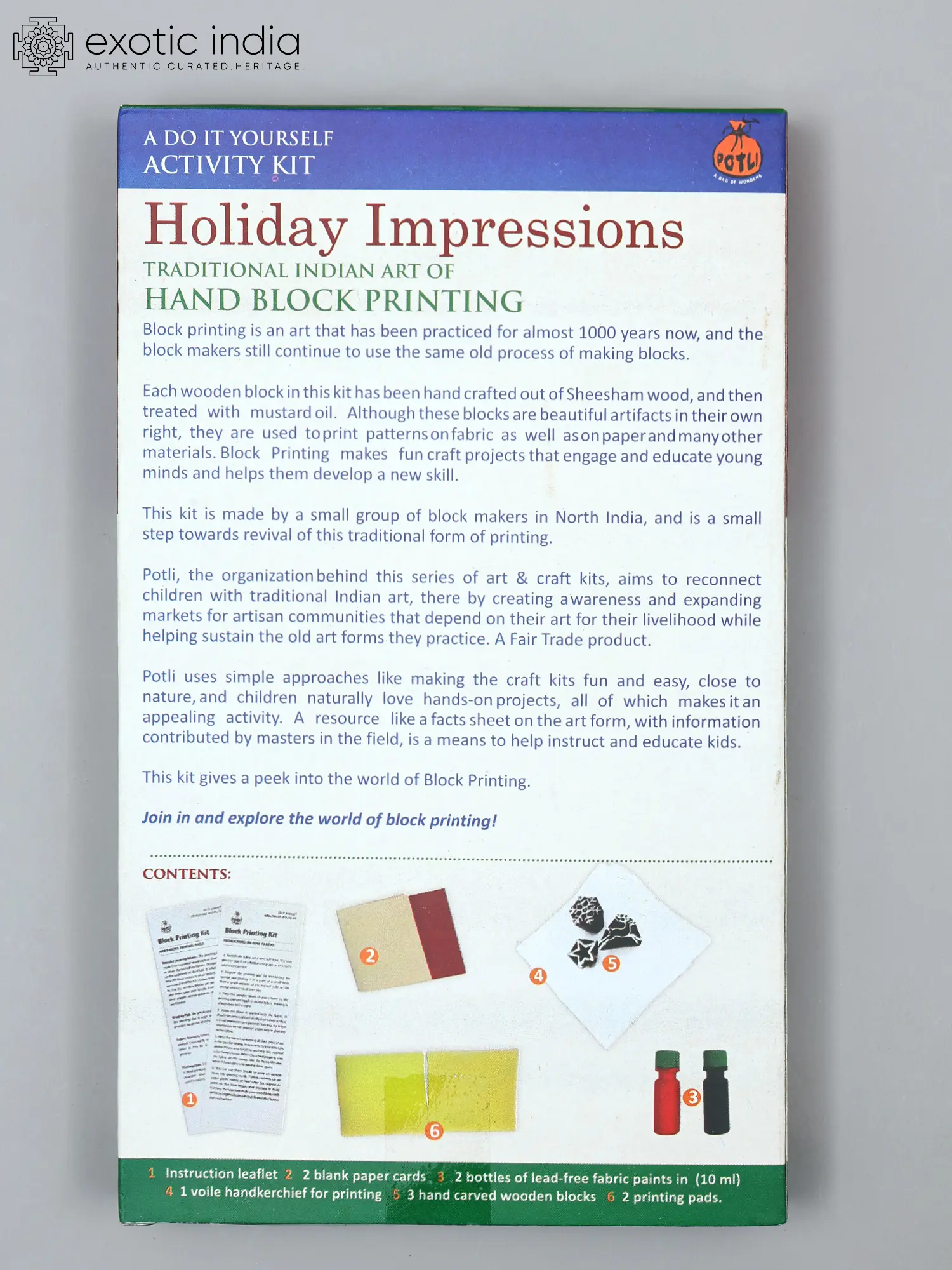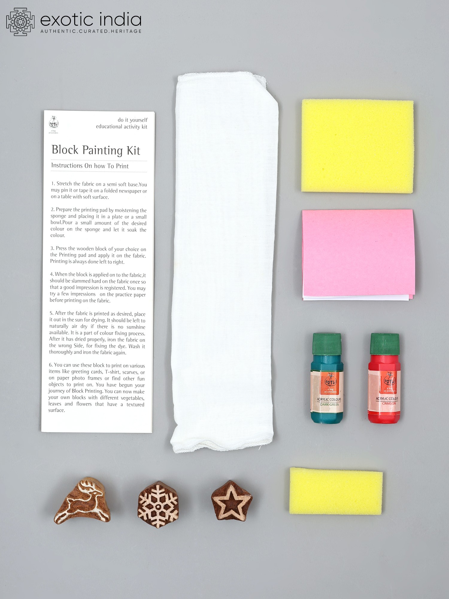 Discover the charm and satisfaction of traditional Indian hand block printing with this thoughtfully curated kit. You'll be guided to create beautiful impressions using carefully carved wooden blocks, allowing you to transfer intricate designs onto various surfaces. The kit includes a selection of vibrant acrylic colors, perfect for bringing your holiday visions to life. From delicate snowflakes to playful reindeer and twinkling stars, the included motifs are perfect for crafting unique holiday cards, gift wrap, festive banners, or even personalized fabric items.