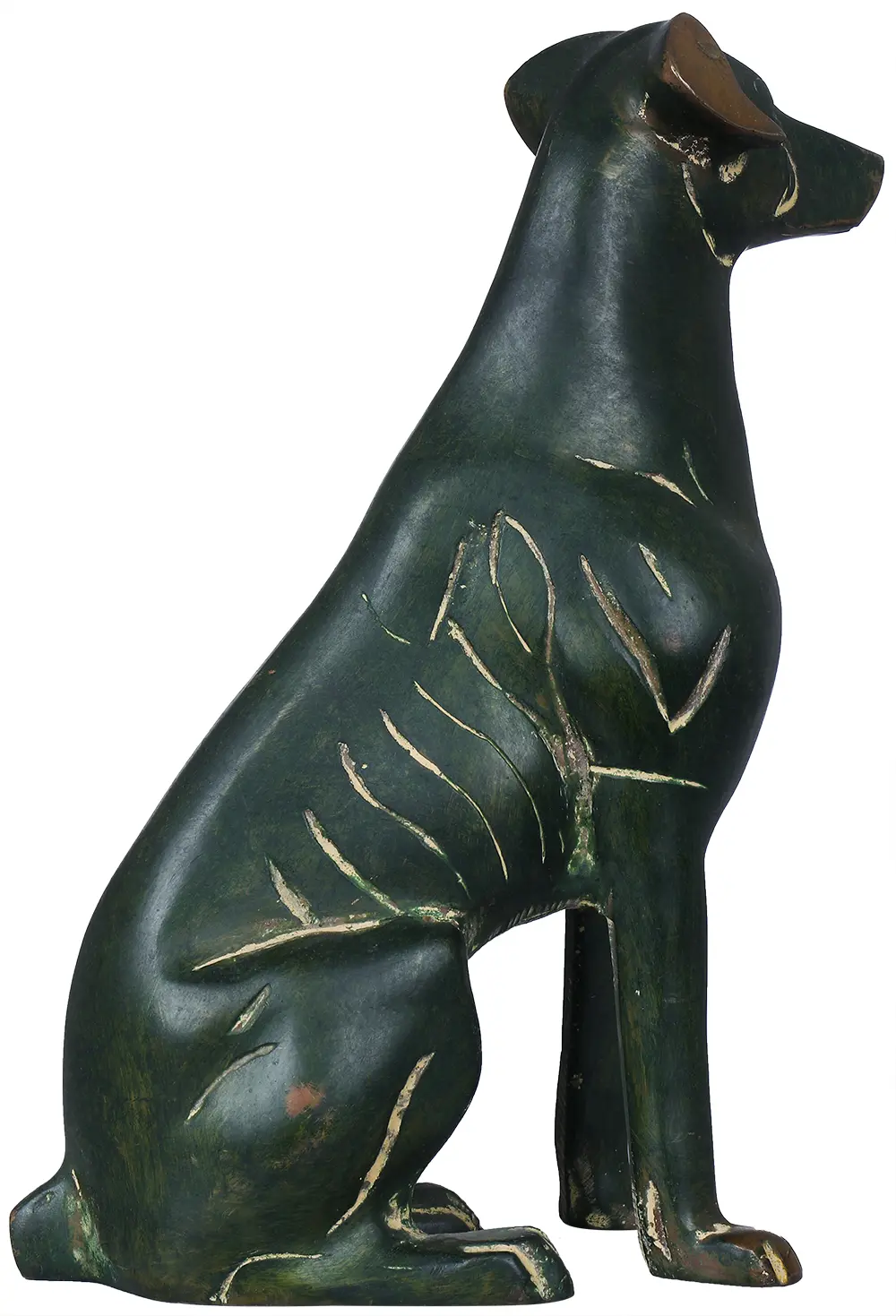 Capture the essence of unwavering devotion with this striking brass sculpture. This meticulously crafted piece embodies the spirit of canine companionship, rendered in a style that blends classic artistry with a touch of contemporary flair. The statue's graceful lines and thoughtfully sculpted features communicate a sense of calm intelligence and steadfast loyalty, making it a captivating addition to any home.