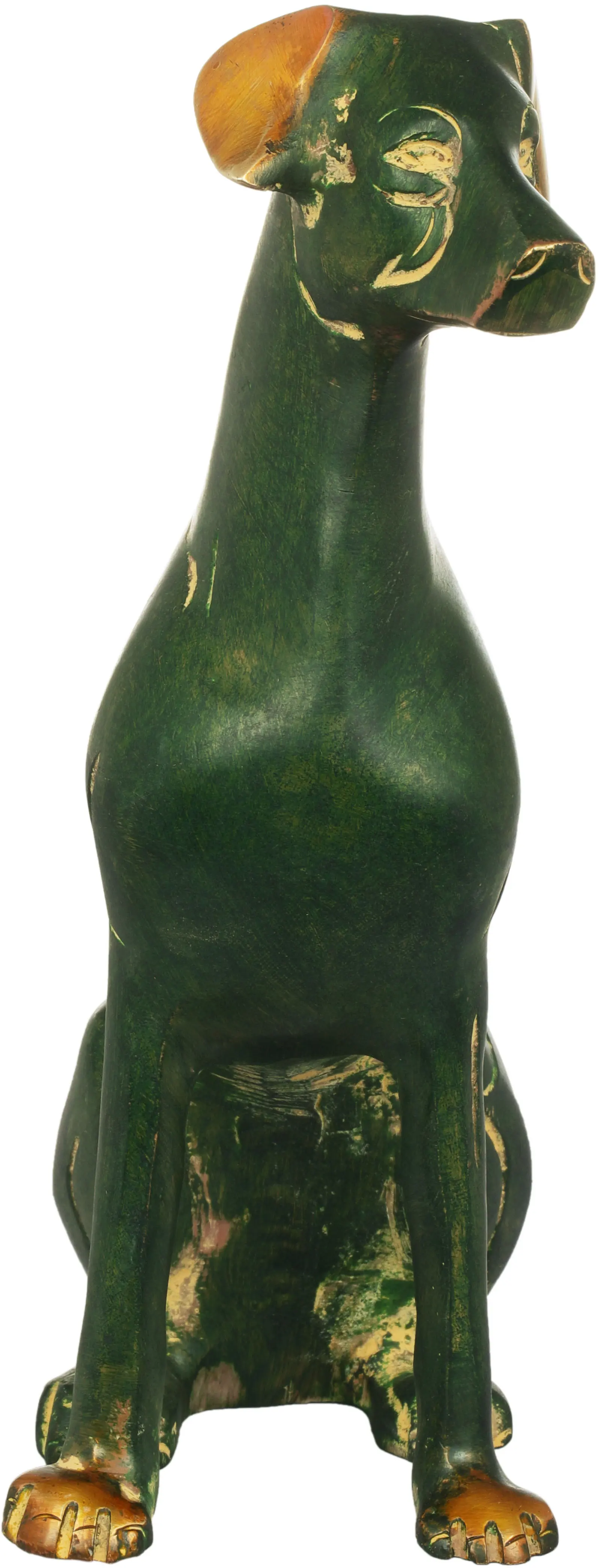 Bring a touch of artistic charm to your home with this unique canine figurine. This piece boasts a distinctive aesthetic, blending a classic subject with a modern, almost abstract design. The sitting posture exudes a sense of calm and quiet observation, making it a serene addition to any space.