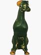 The figure is characterized by its striking coloration and subtle textural details. The primary green hue creates a calming visual, while the contrasting tones highlight the contours of the body and add depth to the design. The carved markings contribute an element of artistic flair, suggesting movement and energy within the still form.