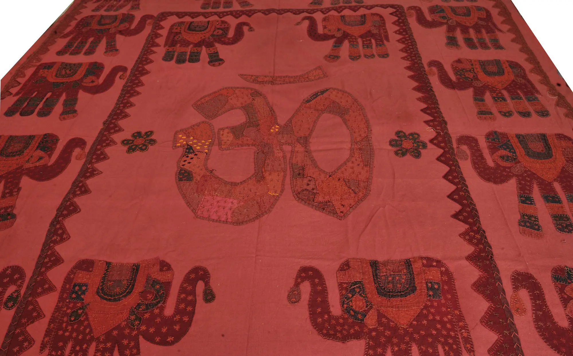 Gujarati Bedspread with Applique Elephants and Embroidered Sequins