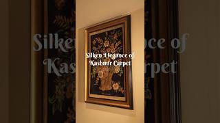 The composite motif of bouqueted foliage conveys a stillness that is also dynamic. Pale greens, blues, oranges, and reds have been interspersed with bits of white and black, each hue being brought out to perfection by the background. Amidst the tips of the tendrils on top flit about a couple of huge butterflies. From the shape of the vase the arrangement is in, it is the kind that is woven at home by grandmothers and grandaunts in Kashmiri homes. Note how one of the tendrils, burdened by a particularly heavy-petalled flower, has broken off and now lies at the foot of the vase.