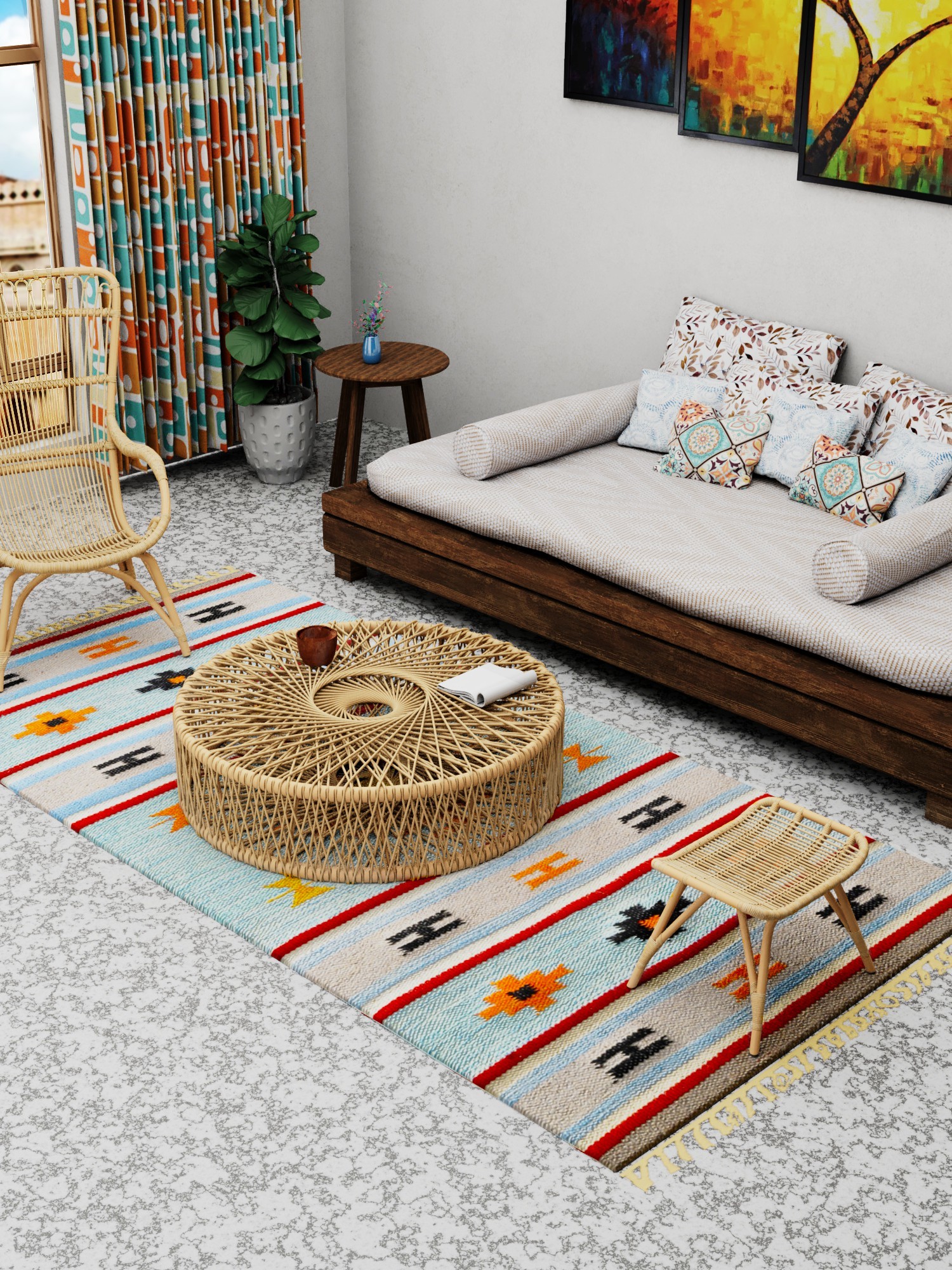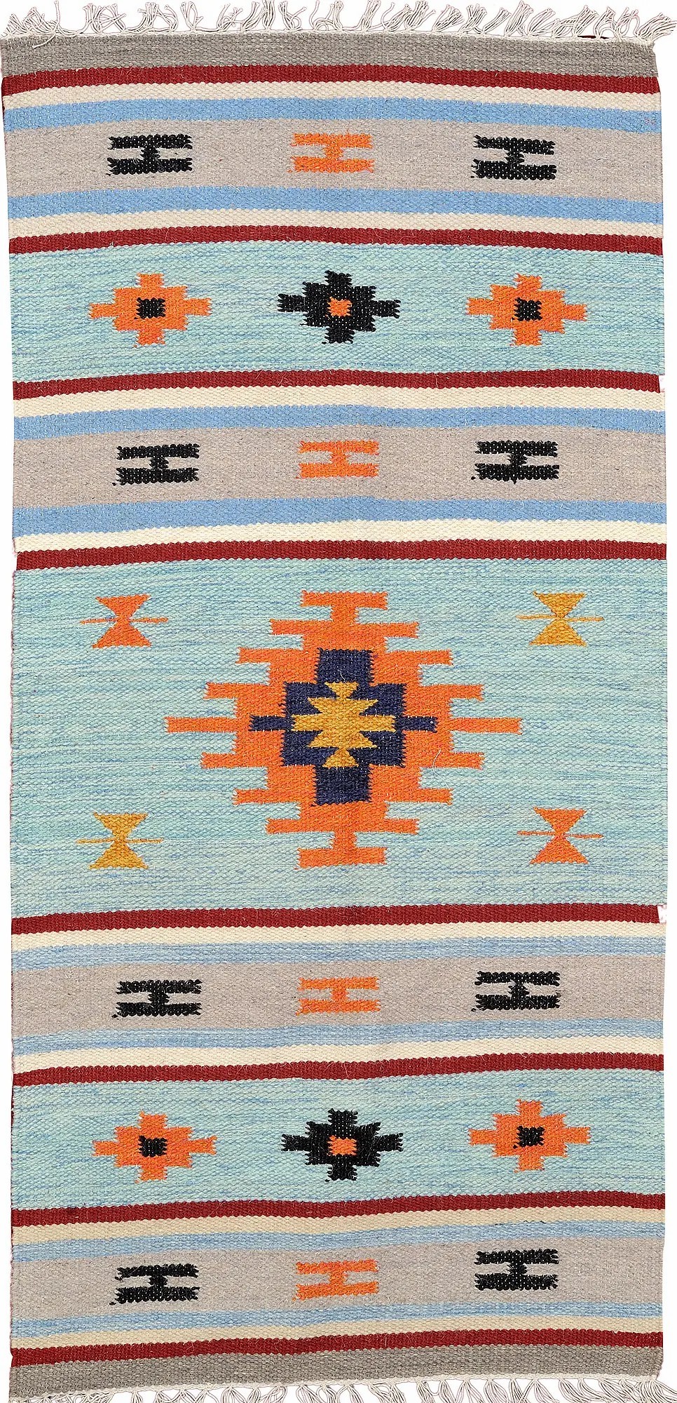 Runner Durri from Sitapur with Hand-woven Stripes in Red and Green Thread
