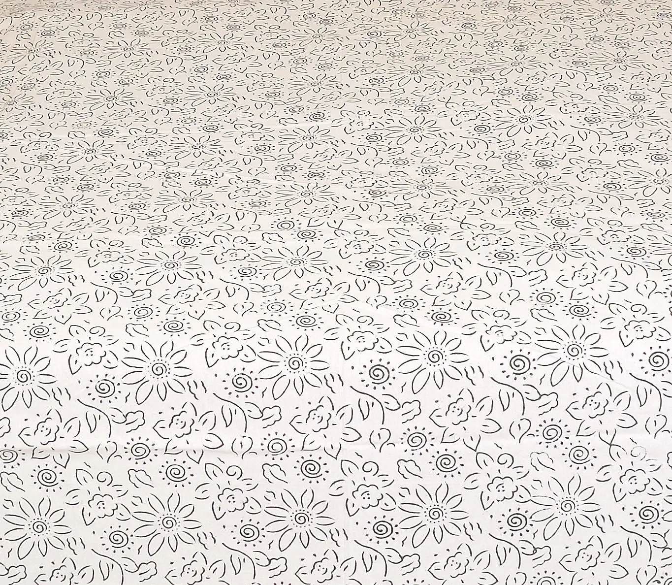 Bright-White Bedspread from Jaipur with Printed Bootis and Flowers