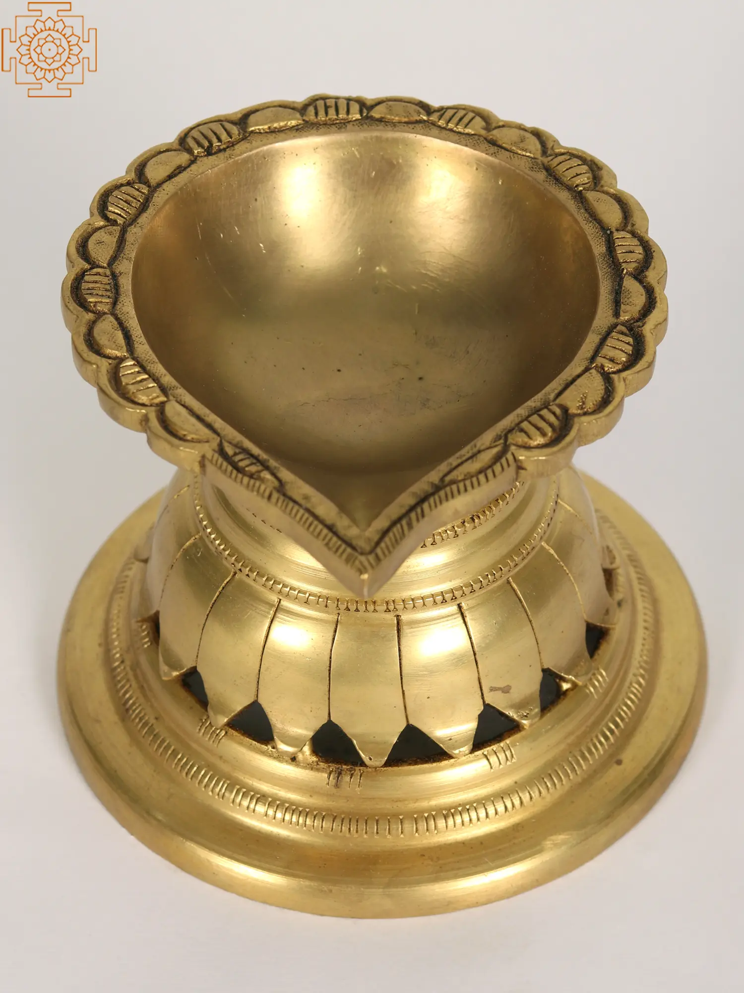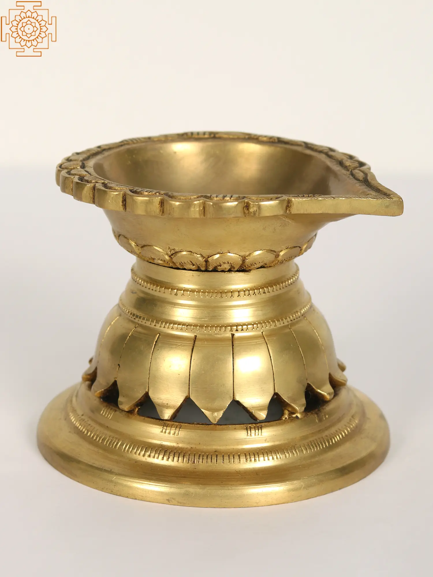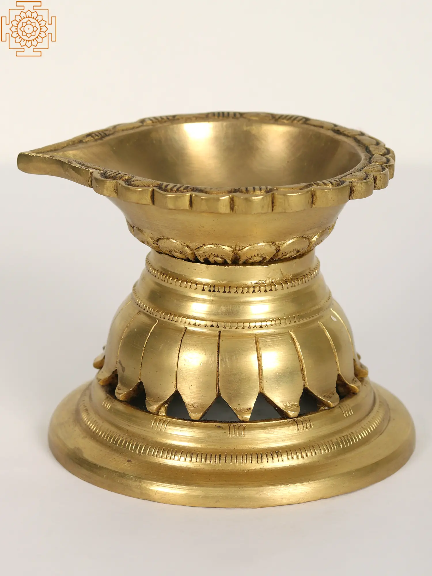 This etched pattern diya is a particularly unusual variant of the Kubera Diya. It has one wick and is fashioned traditionally. The most appealing element of this diya is the lamp's stand, which is shaped like an inverted lotus. The diya has a matt brass finish, which gives it a beautiful and refined appearance. Because the beauty of the Diya is highly spiritual, this lamp may become a lovely addition to any Puja venue.