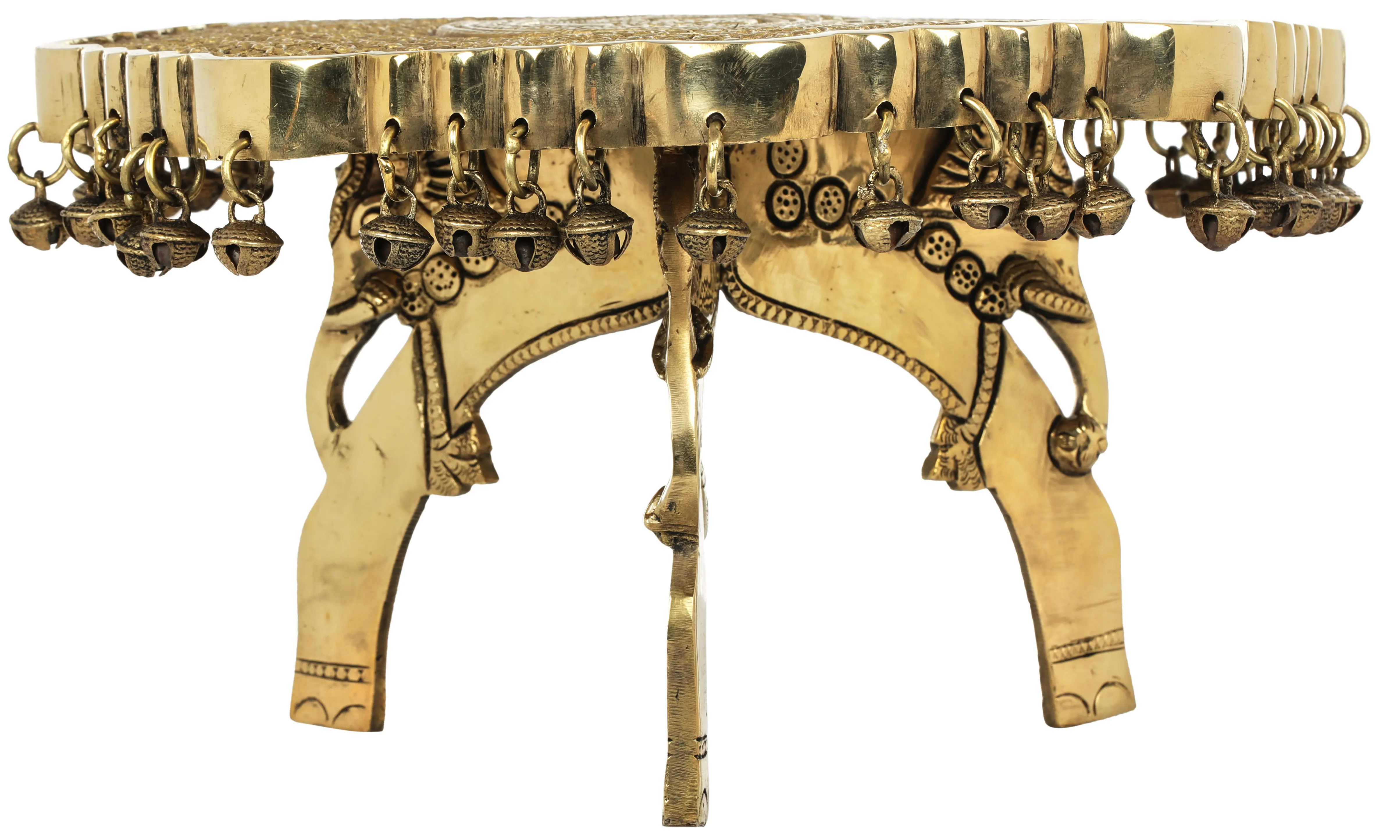 Elevate your rituals with this Engraved Ritual Chowki, a true embodiment of Indian tradition. The elephant head legs symbolise wisdom, strength, and auspiciousness. The resonating ghungroos represent the divine sound of creation. This unique chowki not only adds a touch of elegance to your puja ceremonies but also resonates with spiritual significance. Place your deities upon it, and as you offer your prayers, feel the divine vibrations filling your sacred space. It's not just a chowki; it's a gateway to a deeper connection with the divine, where every ritual becomes a profound spiritual experience.