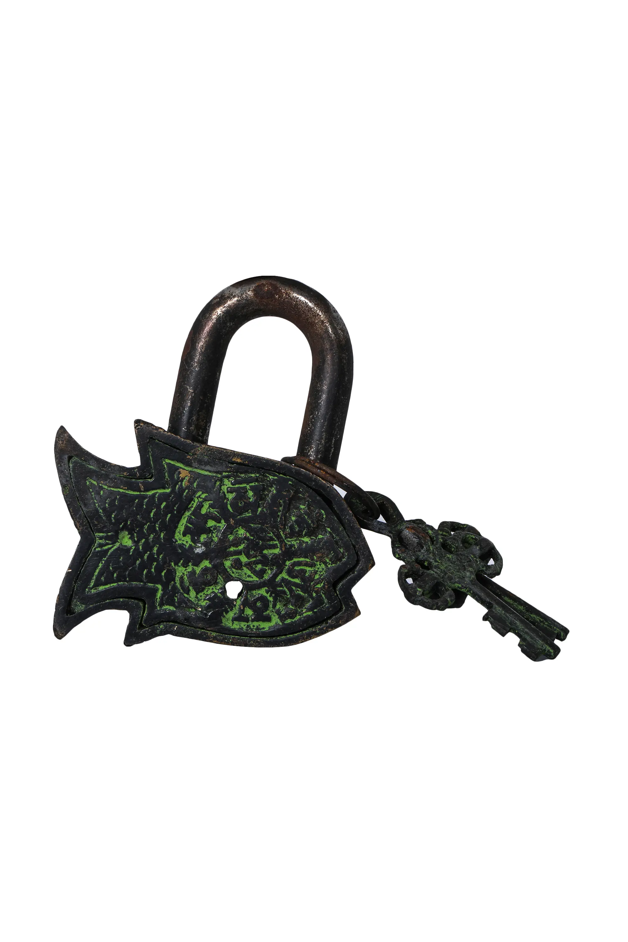 The careful attention to detail is evident in every aspect of this piece, from the meticulously rendered scales on the body to the gracefully curved fins. The brass construction provides a substantial weight and a promise of durability, while the antique finish adds character and depth. The key, secured to the body by a small chain, mirrors the overall aesthetic, completing the design with a flourish. This is a piece that invites closer inspection, revealing the artistry and craftsmanship with each viewing. Imagine it displayed on a bookshelf, adorning a cabinet, or perhaps even serving as a whimsical doorstop – its versatility is only limited by your imagination. Whether you are a collector of curiosities or simply appreciate unique design elements, this is sure to be a treasured addition to your home.