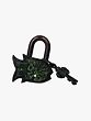 Add a touch of whimsical charm and intriguing security to your home with this unusual and eye-catching piece. This handcrafted item blends the practicality of a functioning lock with the delightful artistry of a sculpted figure. The dark, aged patina, contrasted with subtle hints of green, evokes a sense of history and mystery, making it a conversation starter as much as a functional object. Whether you're looking for a distinctive way to secure a special keepsake box, a quirky addition to your antique collection, or simply a unique piece of décor, this intriguing object offers both utility and aesthetic appeal.