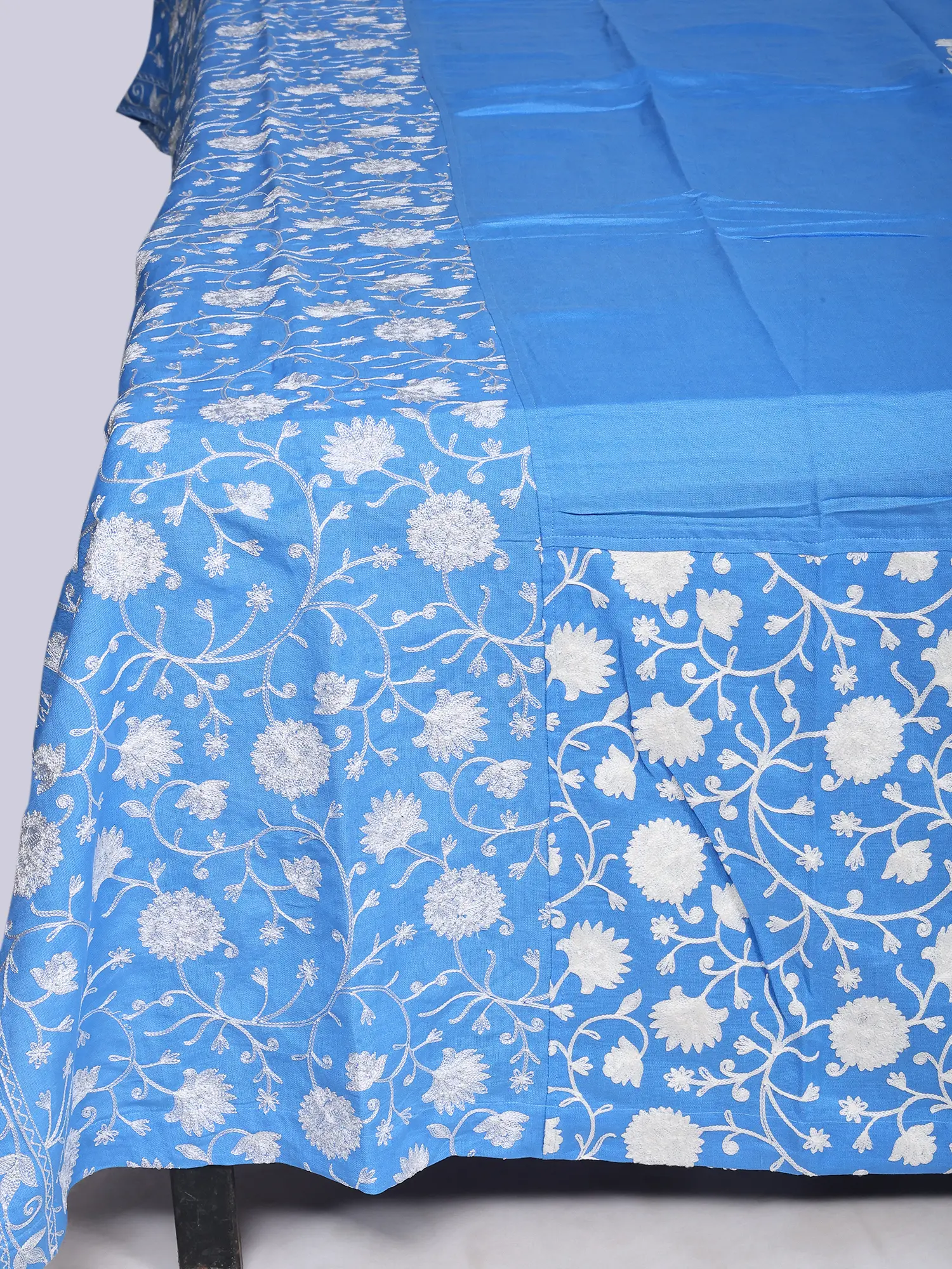 Glacier-Lake Pure Cotton Queen Size Bedspread with Aari Embroidered Flowers