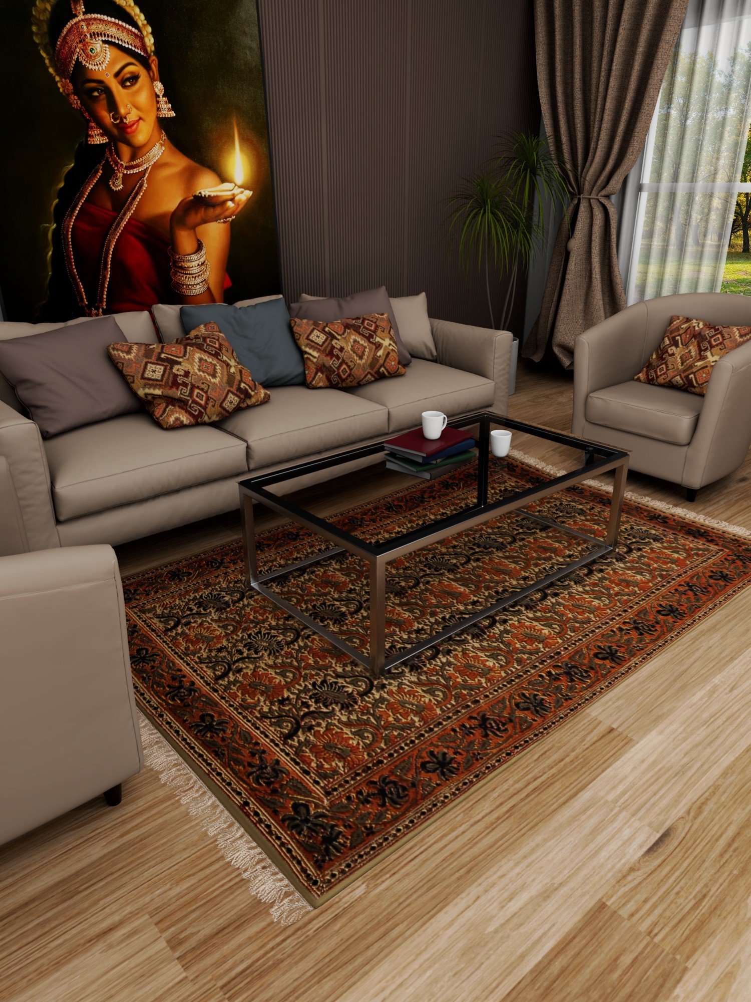 A carpet serves as a textile floor covering and can be seen in almost all Asian homes. European nations also are fascinated by their beauty and thus hand-knotted carpets are in great demand all over the world. A carpet typically consists of an upper layer of fabric and backing attached to it. Carpets can be made in any color by using dyed fibers. Different types of motifs and patterns are fabricated or embroidered on the fabric to beautify the floor. Indian craftsmen make carpets in such a way that every piece bears designs with attention to detail. Bright colors and high-quality fabric are used for their production.