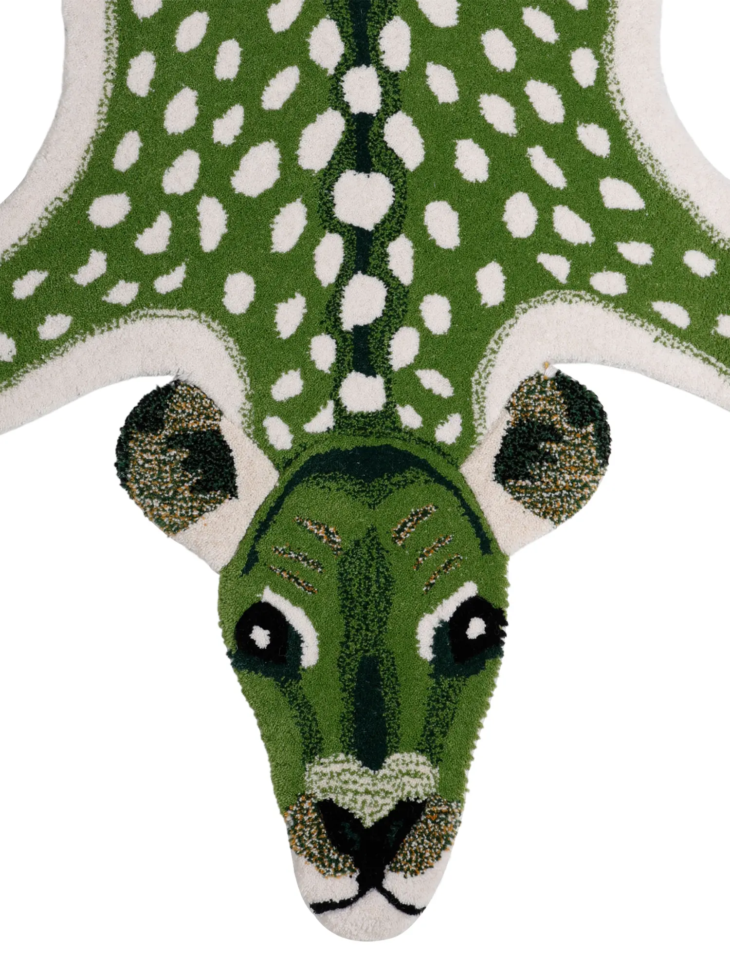 This Fluorite-Green Handmade Spotted Deer Tufted Yogic Asana Mat from Mirzapur combines adorable charm with practical utility, making it an ideal household item for kids. Its soothing fluorite-green hue sets a serene backdrop, while the playful spotted deer design adds whimsy and character to any room.
