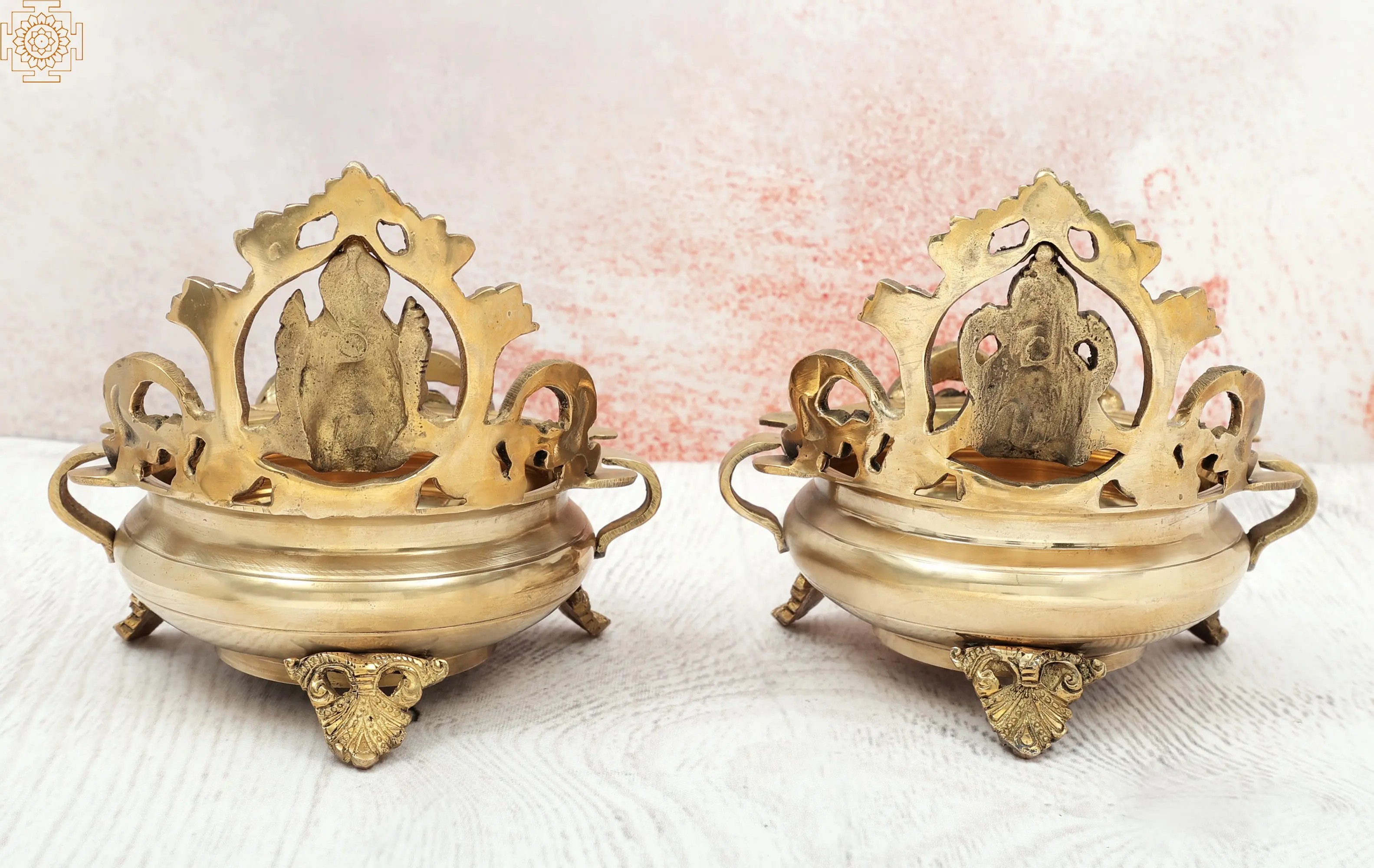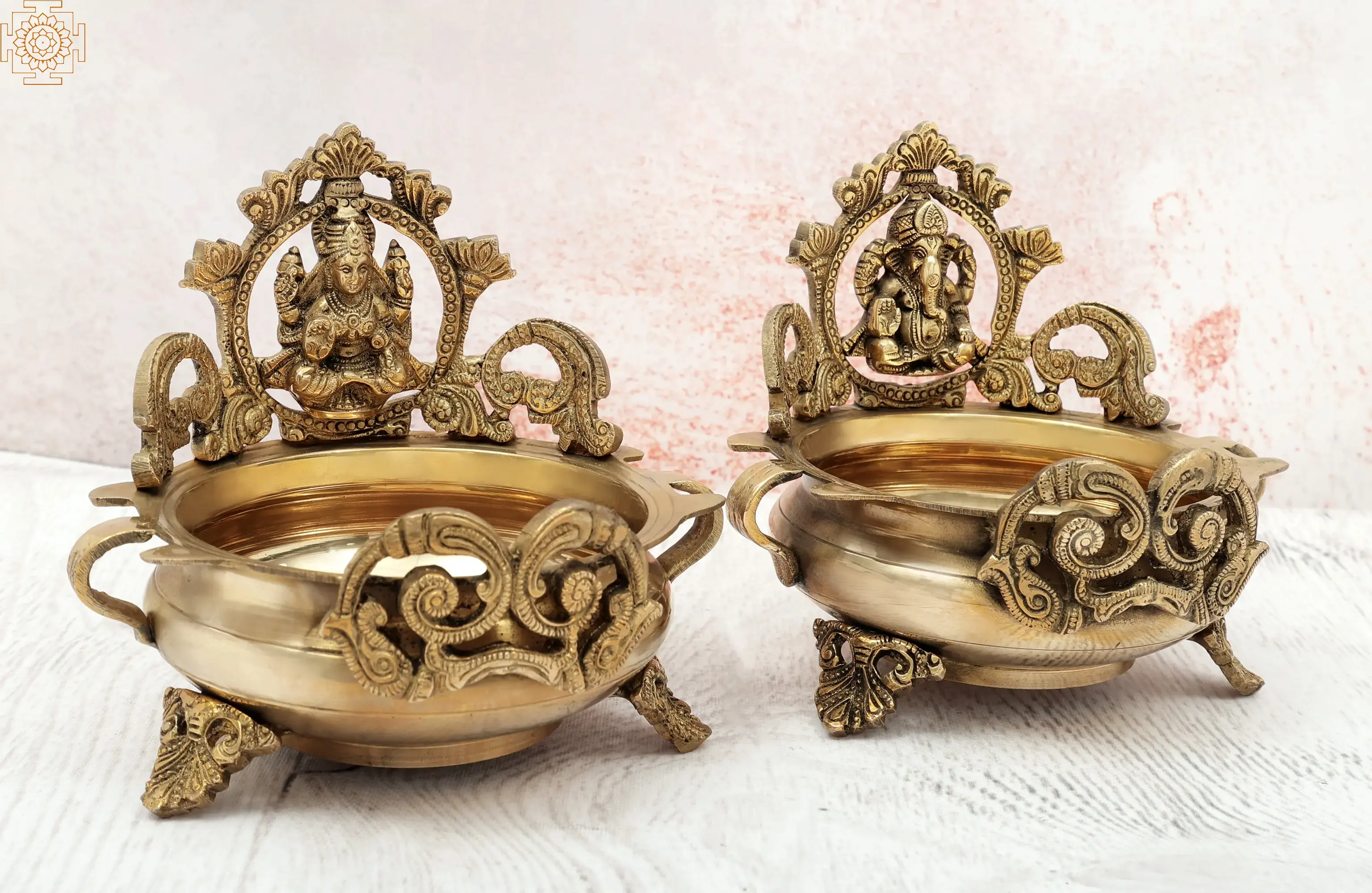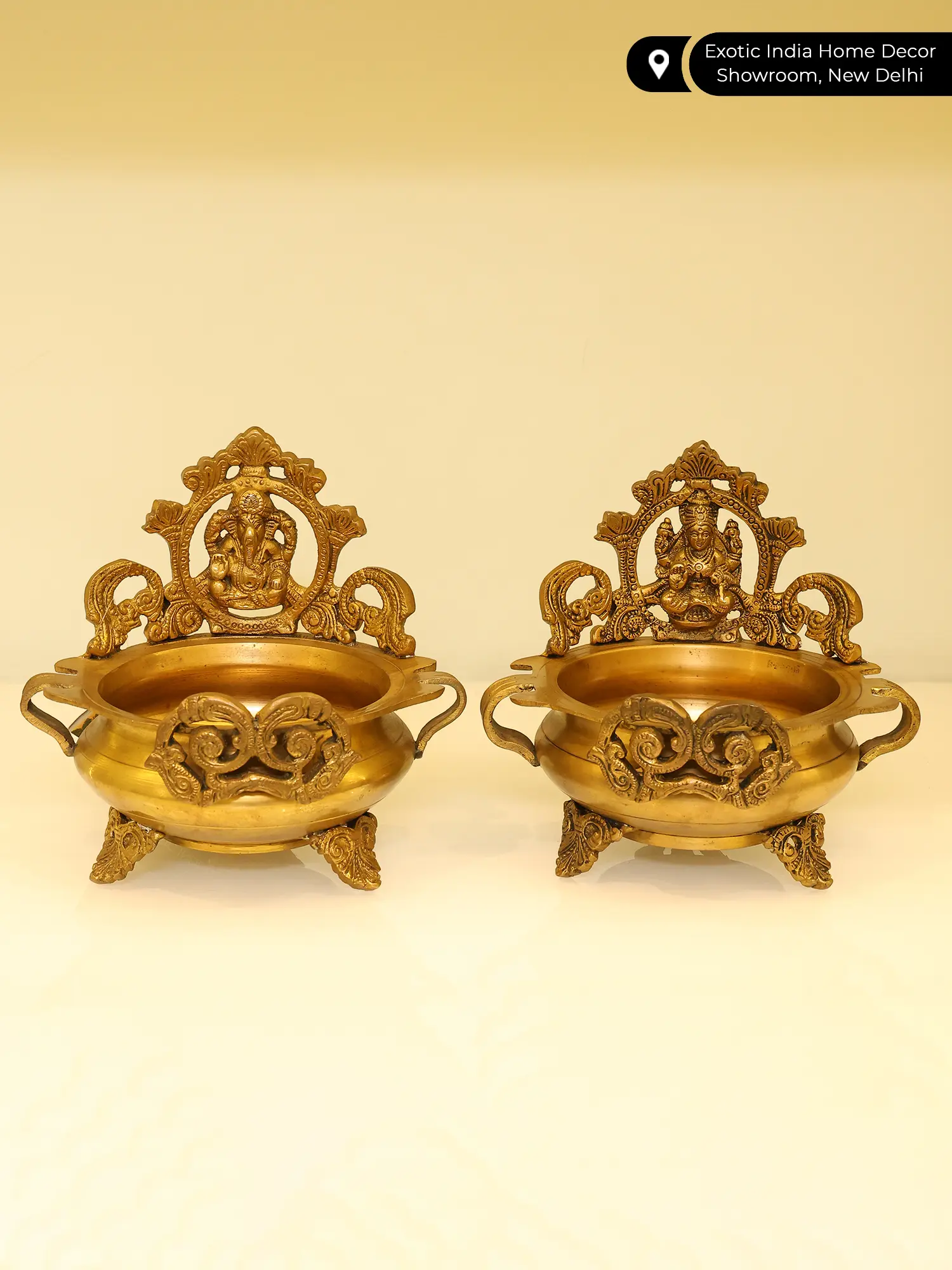 Featuring the divine form of Lord Ganesha and Goddess Lakshmi, this pair of Urli bowls, made of brass, is the ultimate decor for your living room corner. It will not only fill the place with spiritual potency but will also lift up the room’s aesthetic appearance. Take a closer look at the beautiful intricacy of these Urlis that have been handcrafted by artisans with utmost care and attention. Fill these traditional decorative bowls with fresh water and flowers (or their petals) and feel the charming atmosphere.