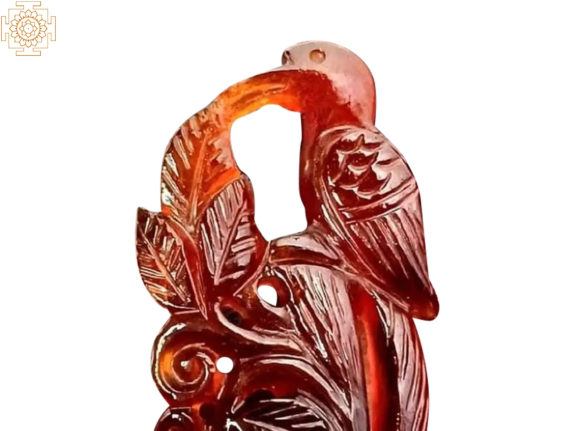 Captures the essence of a parrot in flight, intricately carved from genuine Hessonite Garnet (Gomed).