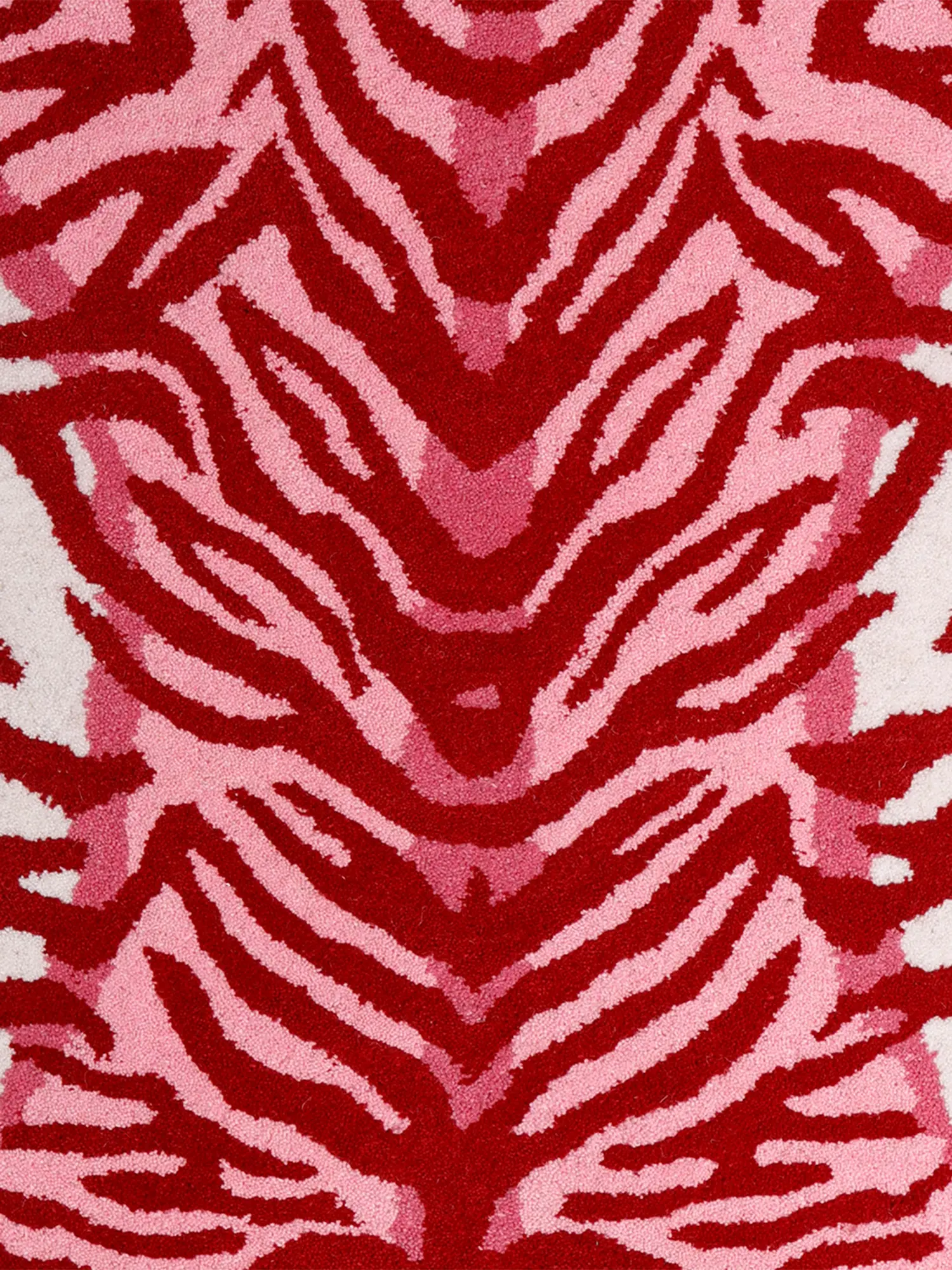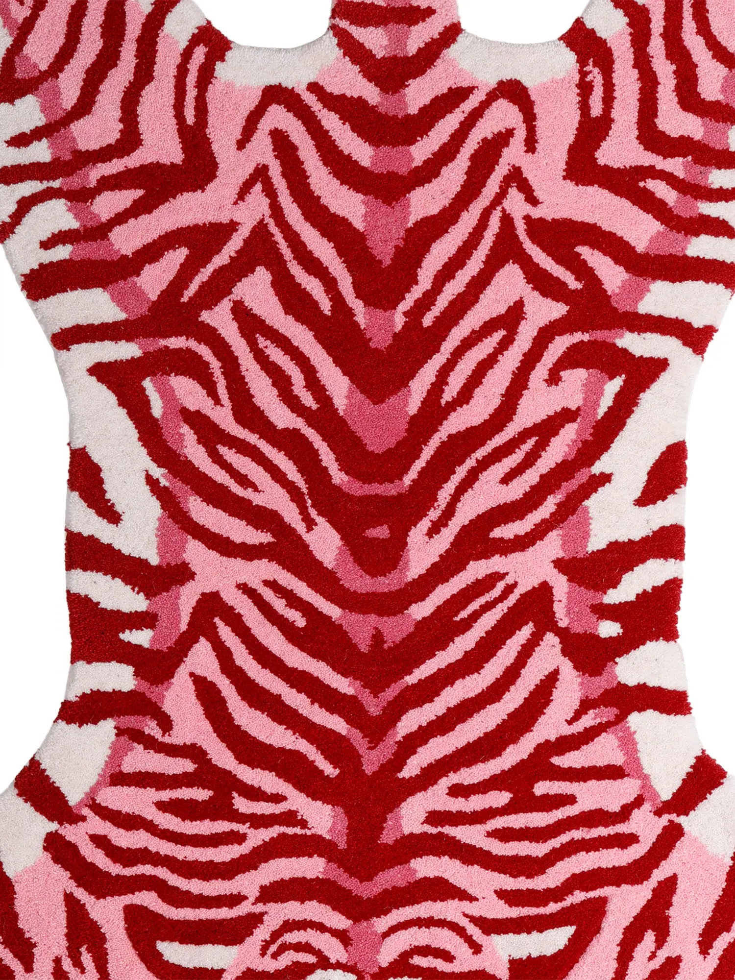 This Geranium-Pink Handmade Tiger Shaped Yogic Asana Mat embodies the fierce spirit of a tiger with its striking design, showcasing a roaring tiger motif that captivates the imagination. Its vibrant geranium-pink color serves as a bold backdrop, drawing attention and becoming an instant eye-catcher in any room.