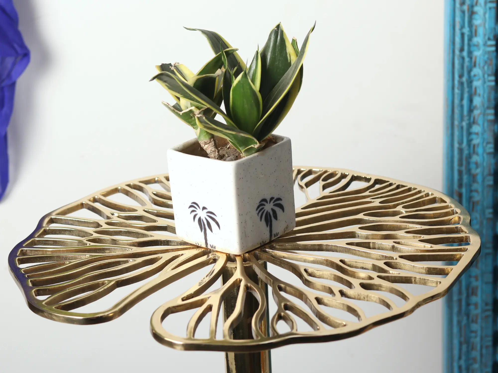 This Golden Lotus Leaf Pattern Brass Table, stands as a radiant embodiment of elegance and refinement. This home decor masterpiece showcases a captivating lotus leaf pattern in resplendent golden hues. The meticulous craftsmanship, featuring intricate detailing, elevates it beyond mere furniture to a work of art.
