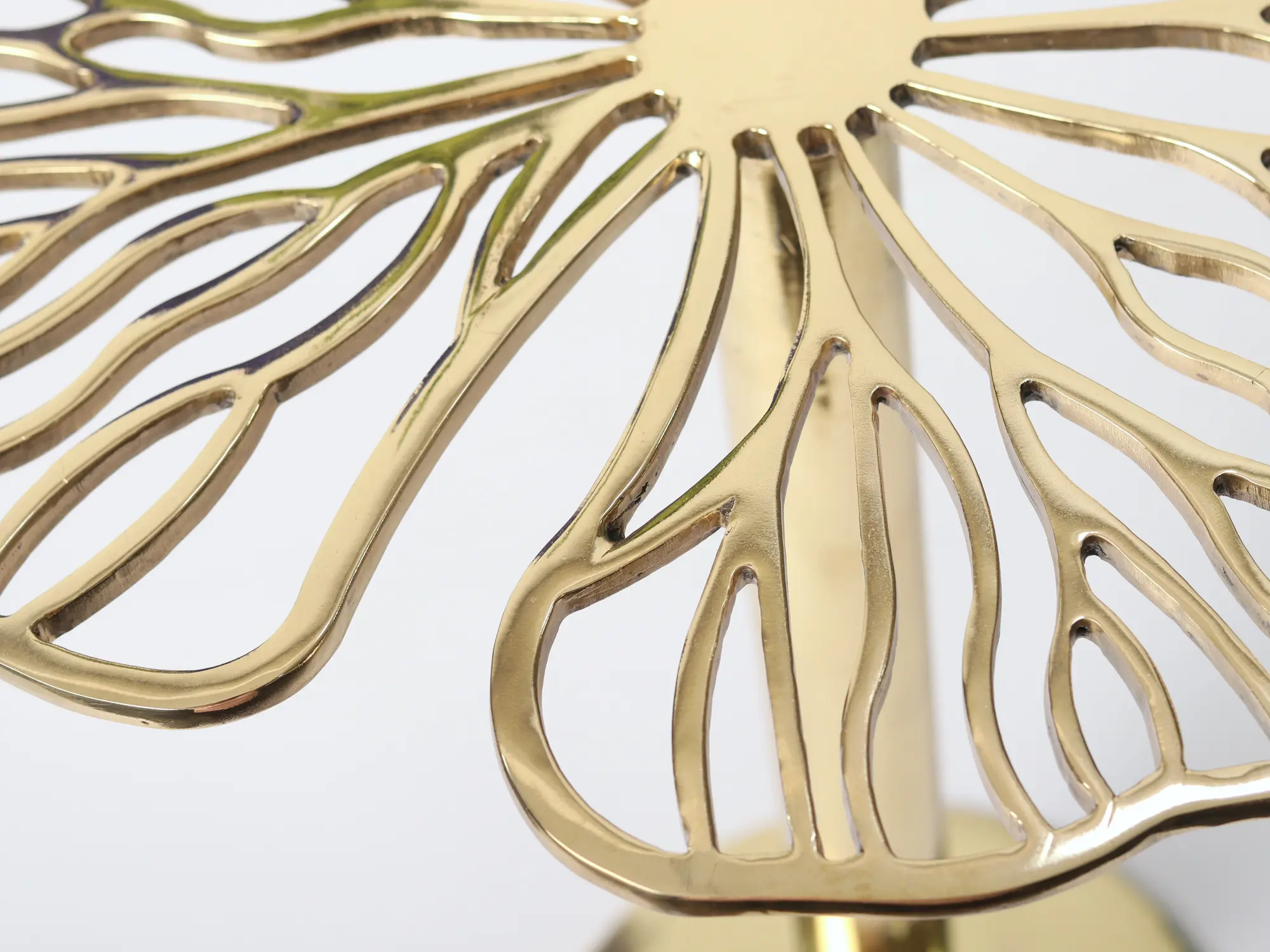The table becomes a symbol of natural beauty, with the lotus leaf motif representing purity and enlightenment. Its golden tones add a touch of opulence, making it a focal point in any space. This brass table seamlessly marries functionality with aesthetics, inviting admiration for its timeless design and luxurious appeal.