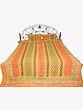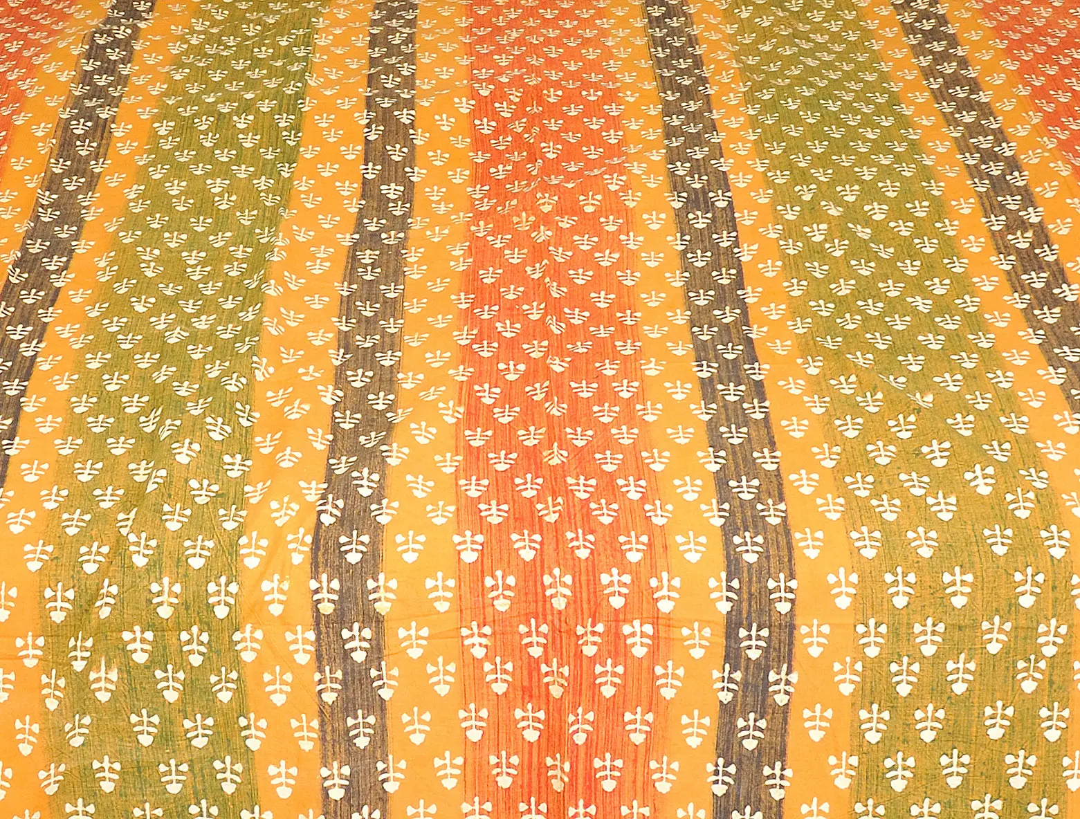 Honey-Yellow Bedspread from Sanganer with Block-Printed Flowers and Stripes