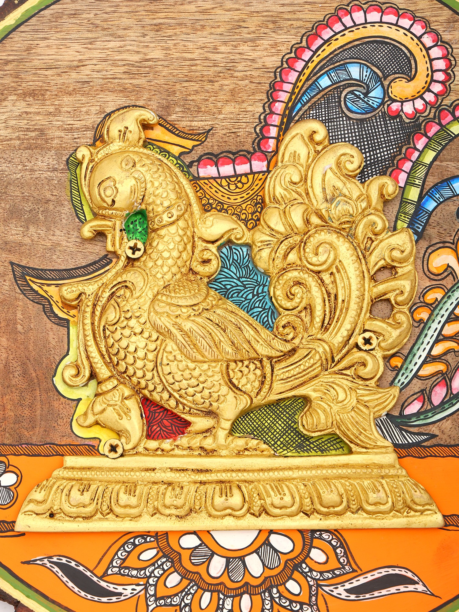 21" Superfine Bronze Peacock Design Wall Hanging with Hanging Diya | Handmade