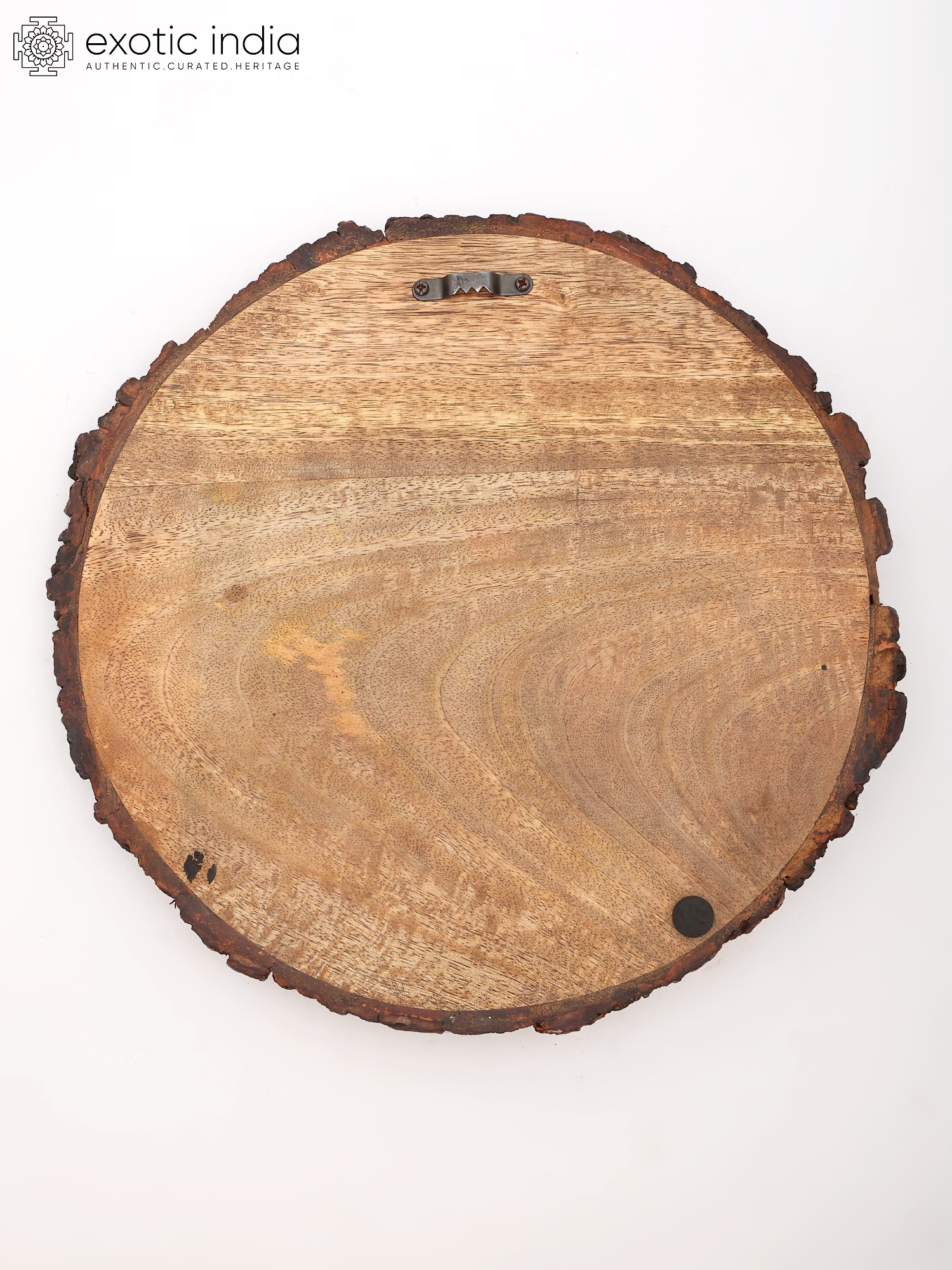 Crafted on a natural wood slice with a rustic bark edge for a unique look.