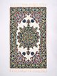 Green and White Carpet with Silk Thread Embroidered Flowers from Kashmir