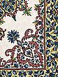 This versatile rug is more than just a floor covering; it's a statement piece that adds a touch of timeless elegance to any room. Whether placed in an entryway to welcome guests, as a focal point in your living room, or at the foot of your bed for a touch of everyday luxury, its detailed embroidery and harmonious color palette will undoubtedly elevate your decor. The cream-colored canvas serves as a perfect backdrop, allowing the vibrant silk threads to truly shine and command attention. The natural fringed edges add a final, artisanal touch, completing the authentic Kashmiri charm of this remarkable creation. Bring a piece of paradise into your home with this breathtaking embroidered masterpiece.