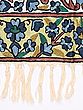 Blue and Yellow Kashmir Carpet from Chain Stitched Embroidered Paisleys and Flowers with Tassels