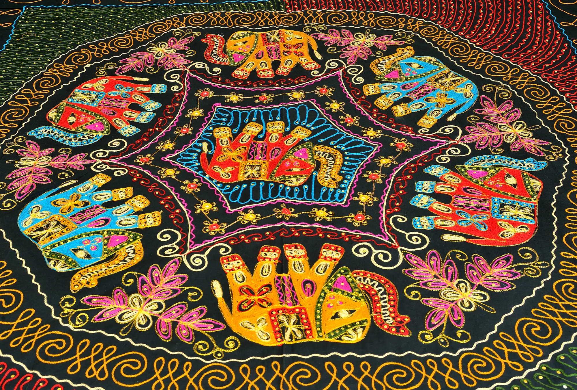 Gujarati Bedcover with Applique Elephant and All-Over Embroidery with Sequins Work