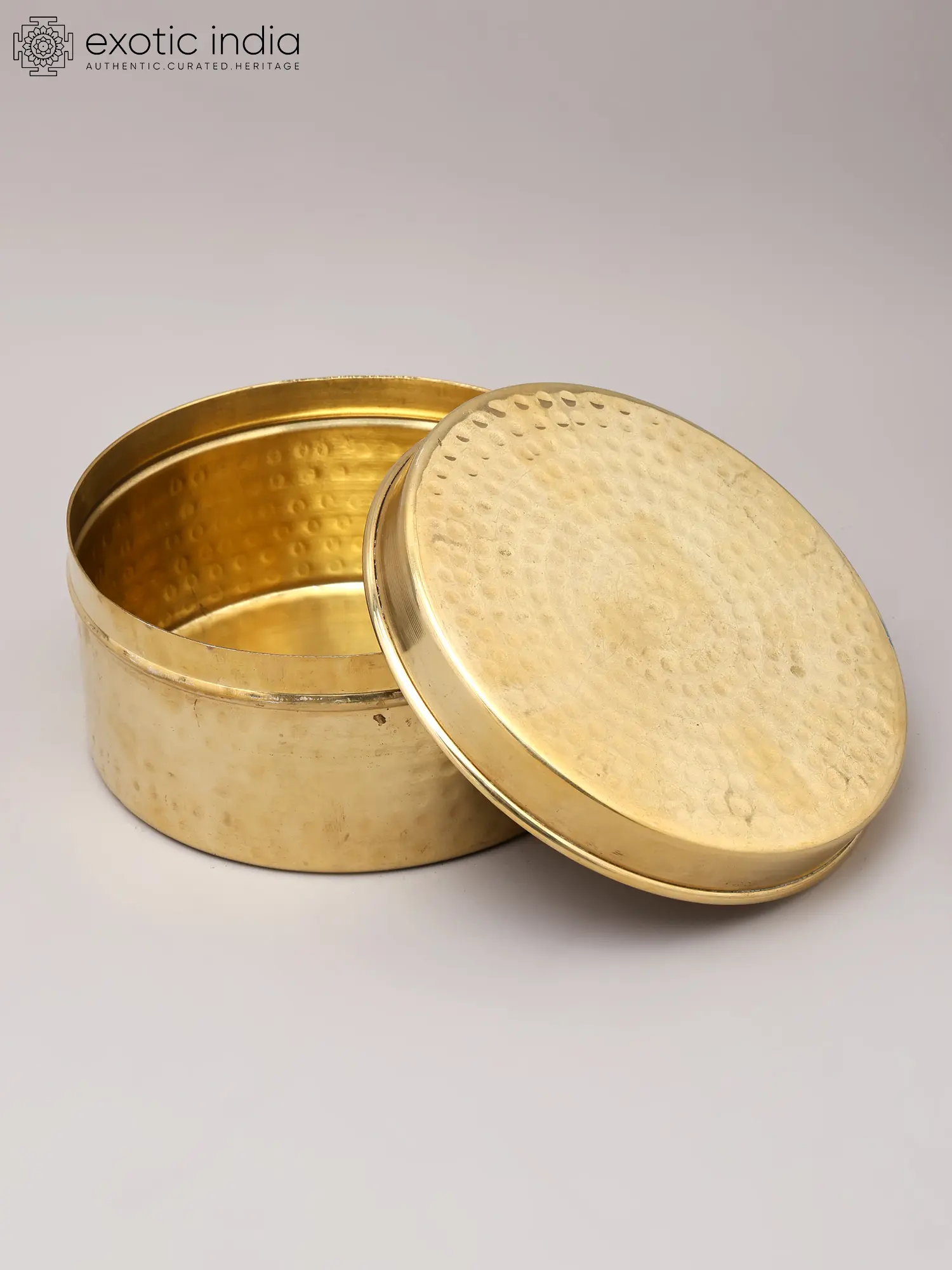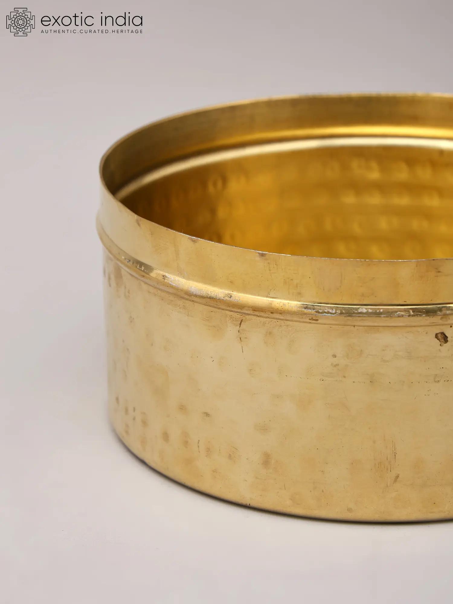 Elevate your kitchen's aesthetic with a piece that whispers tales of tradition and artistry. This exquisite brass container invites you to store your most cherished ingredients or delectable leftovers with unparalleled elegance. Its tactile beauty and enduring quality promise to be a cherished fixture in your home for years to come.
