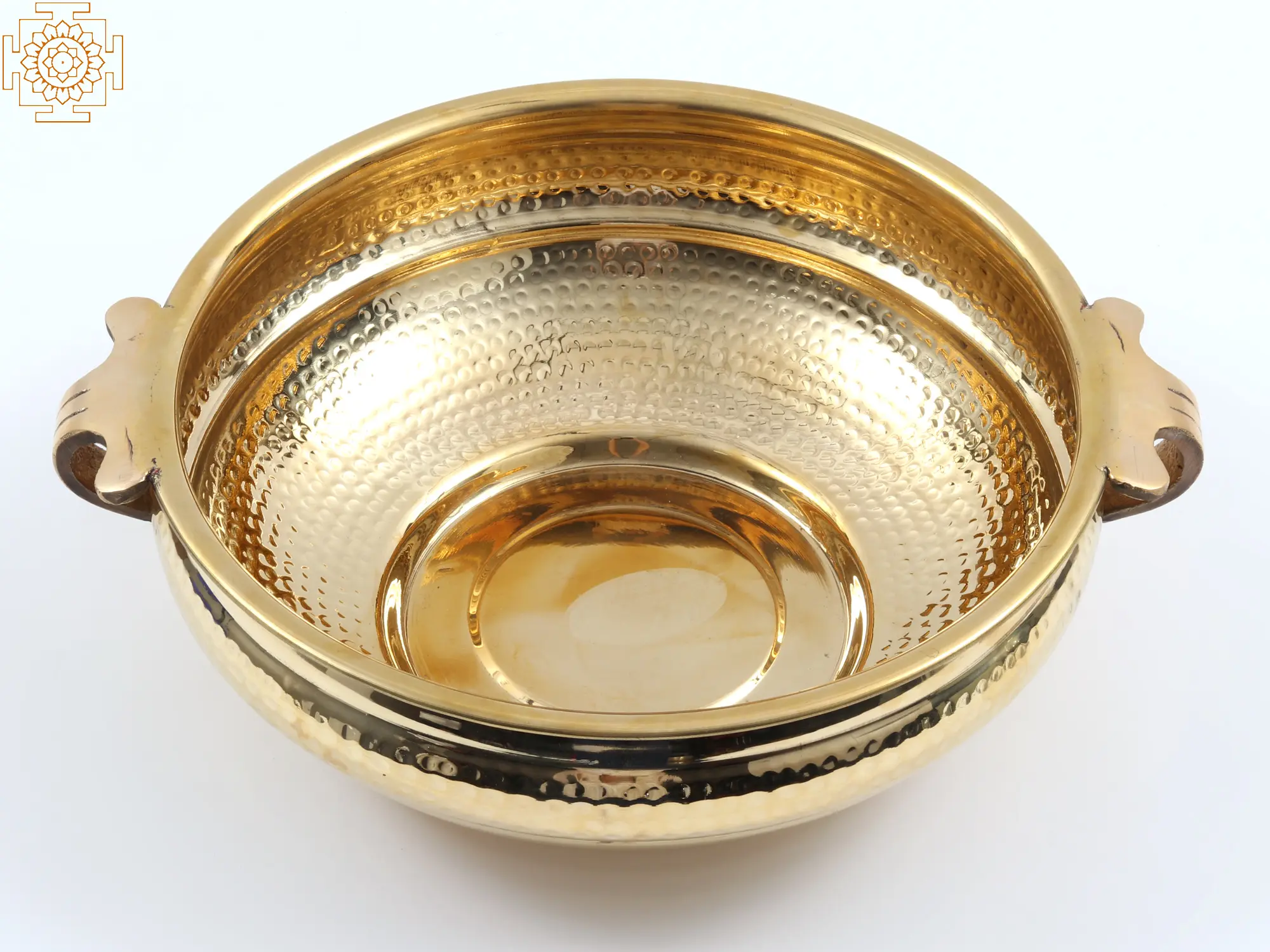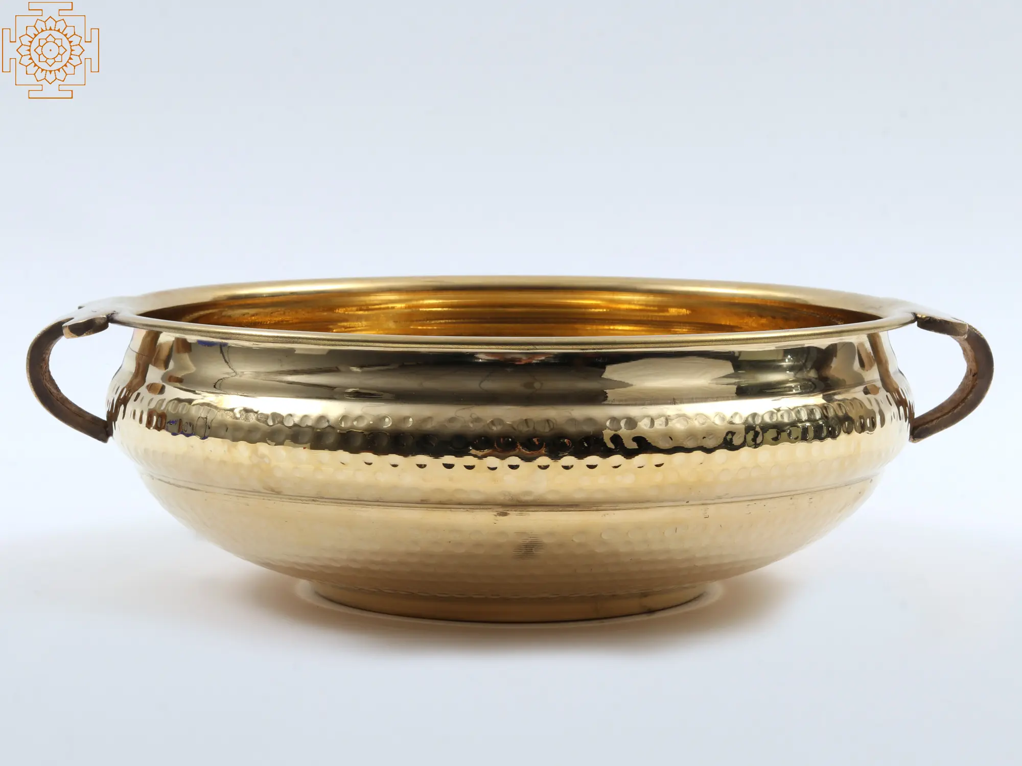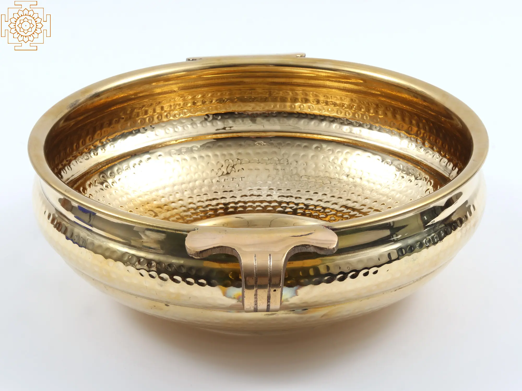 According to Vaastu Shashtra, water is a poor conductor of heat and negative energy, and brass possesses disinfectant characteristics. This hammered Urli made of brass combines the benefits of brass metal with the usability of an Urli. The handles on both sides of the Urli make it convenient to carry. When filled with water and decorated with flowers and candles, it becomes a great piece for home decor with all the goodness that Vaastu requires in a home decor item.
