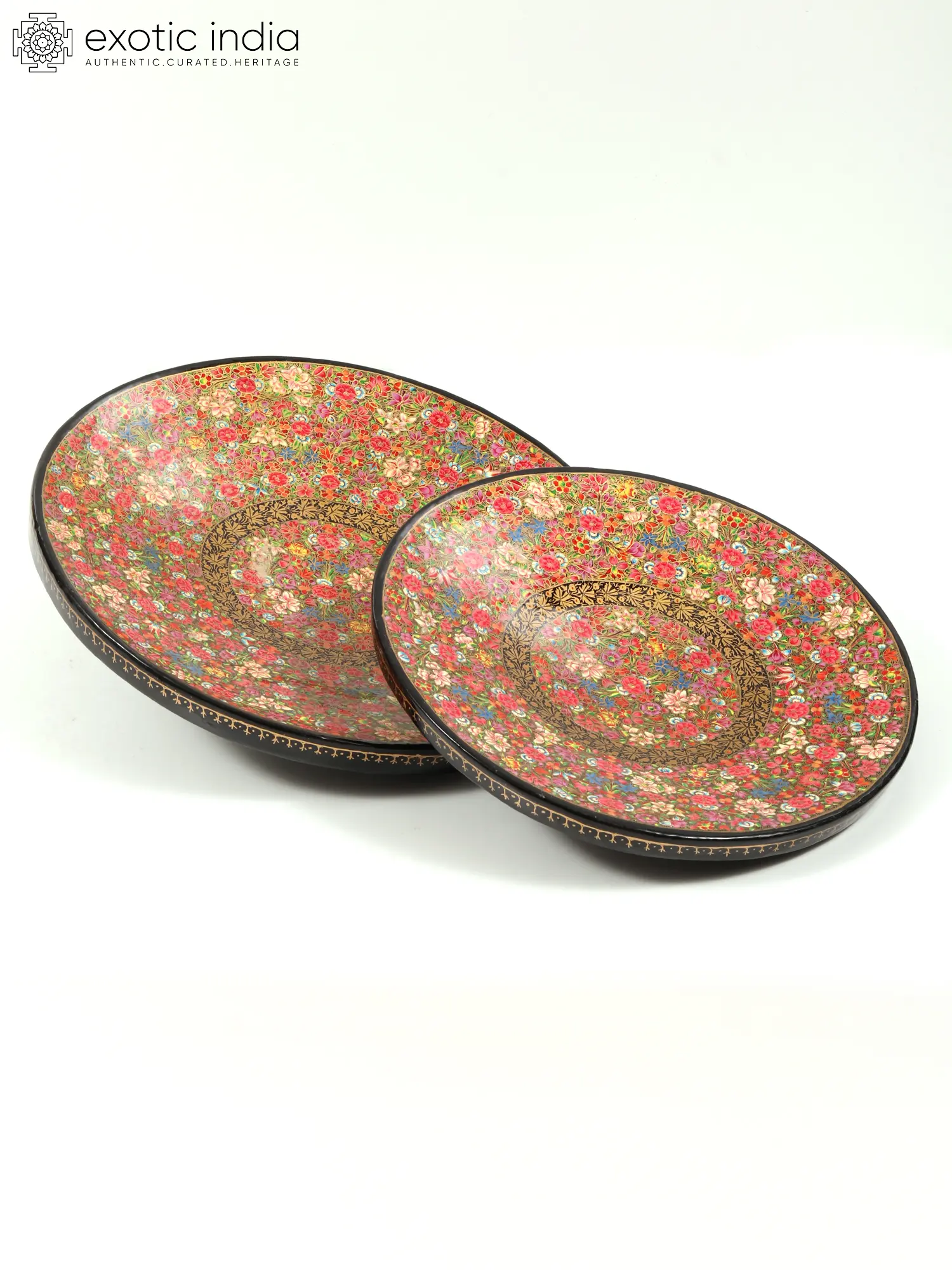 12" Two Red Birds Sitting on Tree | Handpainted Wooden Folk Art | Wall Plate for Decor