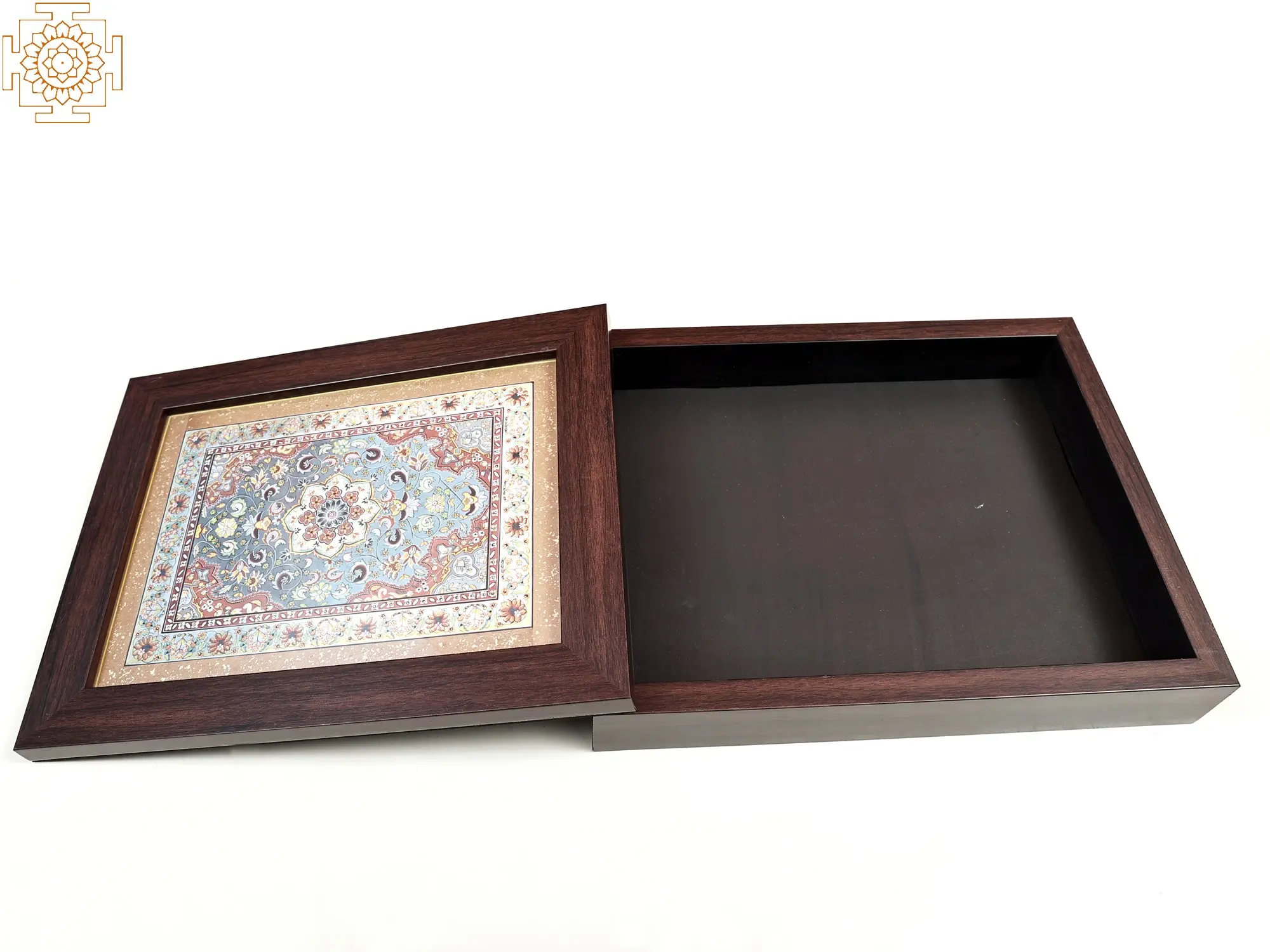 Unveil the enchanting world of creativity with this “Handmade Wooden Painting Box”, adorned with a mesmerising carpet design. Crafted with passion and precision, this artisanal masterpiece transcends the ordinary, inviting you to explore the realms of imagination.