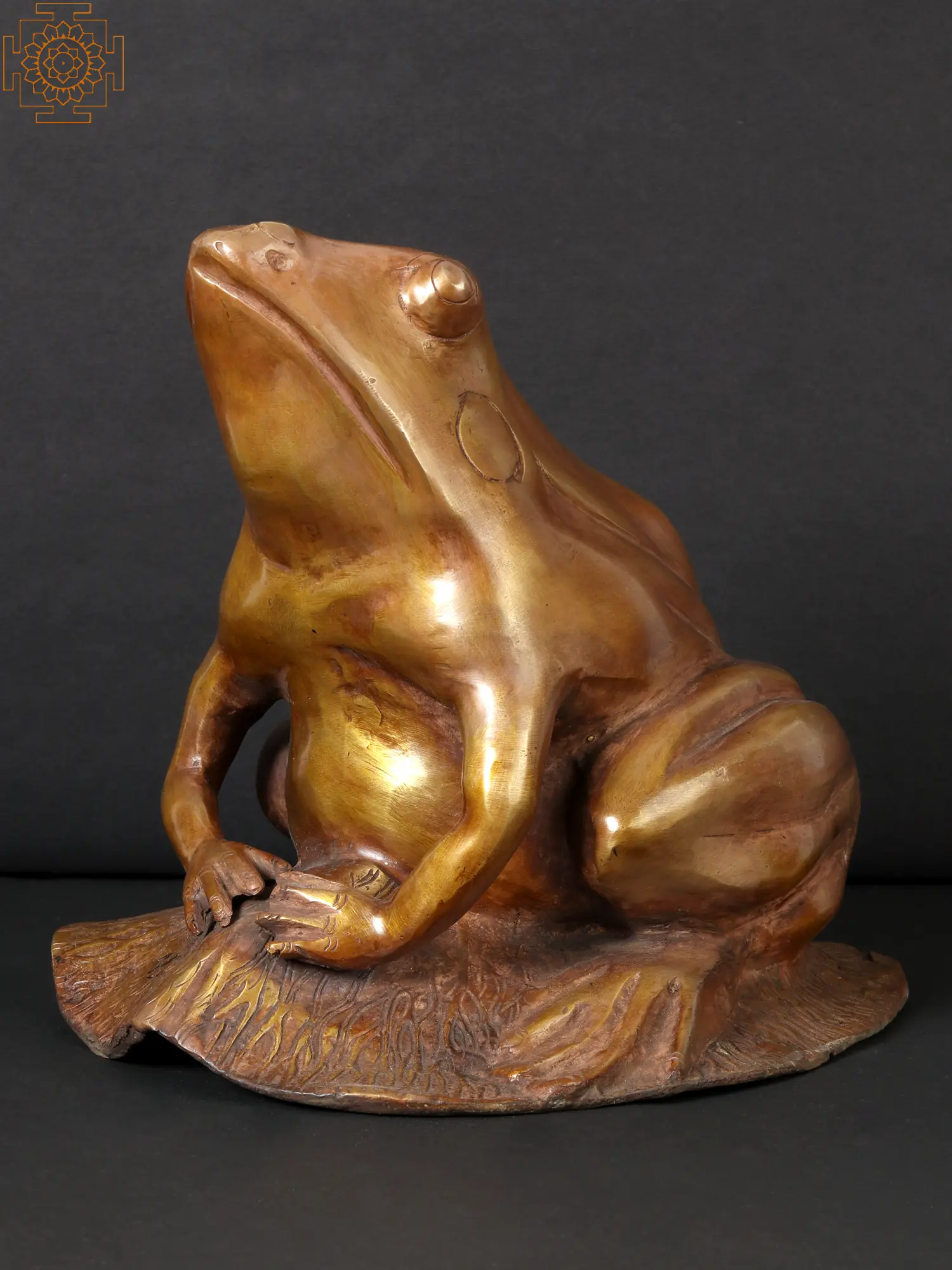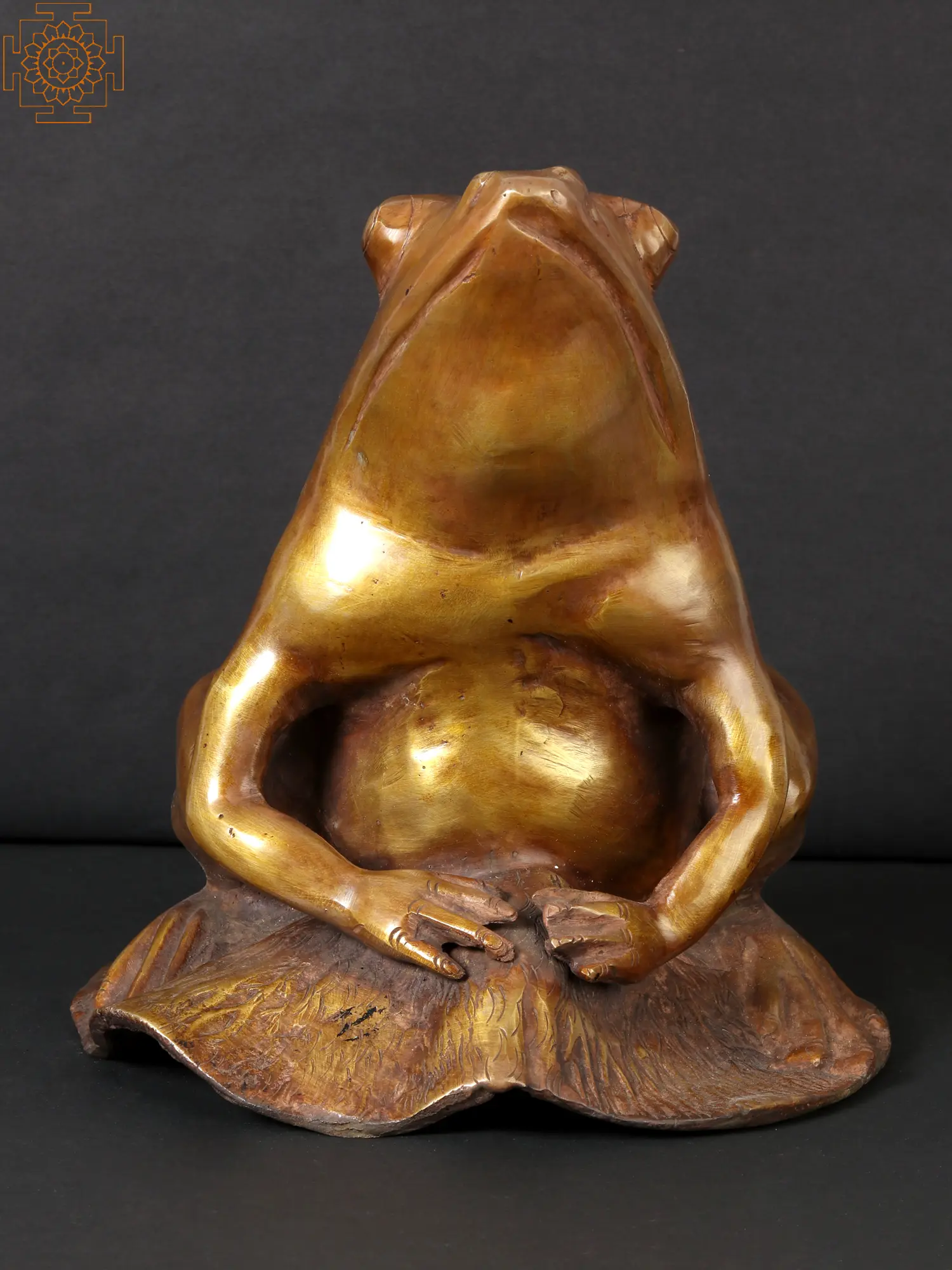 Perched majestically on a lotus leaf, this Heavy Brass Frog Figurine encapsulates symbolism and grace. The frog's weighty presence on the leaf signifies a profound connection to rain and growth, a symbolism deeply rooted in nature. In Sanskrit, frogs, or manduka, play a symbolic role, resonating with their significance in Hindu mythology. During the rainy season, the frog finds its natural habitat on the lotus leaf, embodying the cycle of renewal and abundance. Beyond the tangible, the figurine alludes to spiritual ascent, drawing inspiration from the Upanishad's wisdom on effortlessly leaping from the first to the fourth step of consciousness, akin to the agile movements of a frog.
